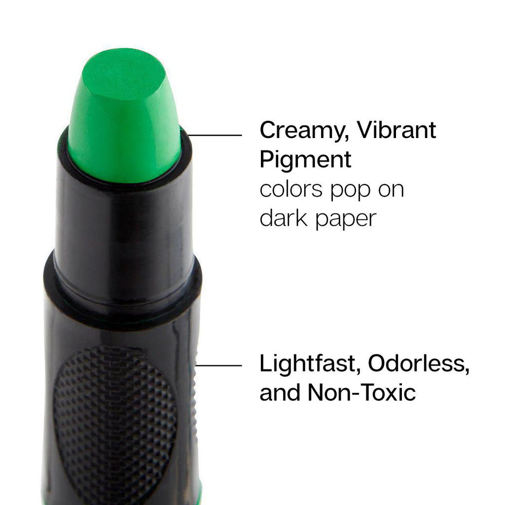 Compact acid-free pigment sticks glide on creamy smooth for vibrant color and coverage.  All KINGART® Gel Stick Crayons blend easily with or without water.  Try this unique medium on paper, canvas, or wood and they look incredible on dark paper.  These 24 mixed media gel sticks are perfect for aspiring enthusiasts and beginners looking to enjoy new levels of creativity.