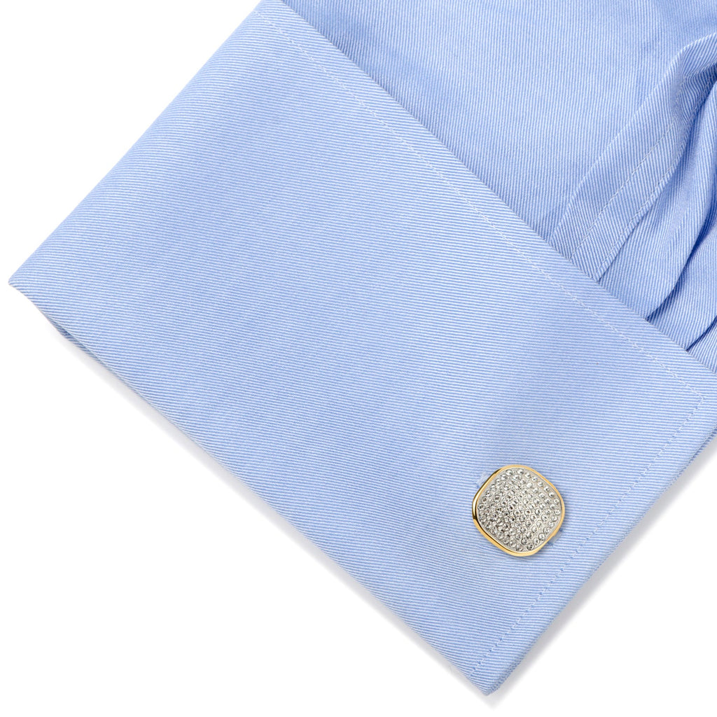 Designed with a brilliant shimmer of elegance, our Gold Stainless Steel White Pave Crystal Stud Set is crafted with some of the world's most delicate and precisely-cut Preciosa crystals. These stunning pavé-set white crystal cufflinks and tuxedo studs will bring a touch of sparkle to your next formal event. Our stud set will stand up to wear and maintain their sleek, shiny look thanks to being crafted from durable stainless steel.