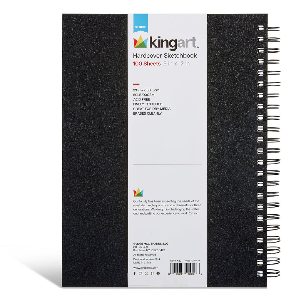 KINGART® Hardbound Sketchbook Journal, Side Wire Spiral, 60 Pound (90 gsm), 9" X 12", 100 Sheets