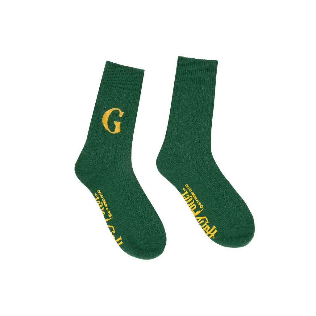 Represent the magical mischief and brotherhood of Fred and George Weasley with these Harry Potter-themed crew socks! They feature a golden yellow "G" on the left sock and a matching "H" on the right. Plus, a golden yellow line runs down the back of each sock, just like the iconic Weasley sweater. Whether you're a fan of Harry Potter or just love a good pair of novelty socks, these are sure to bring a smile to your face.