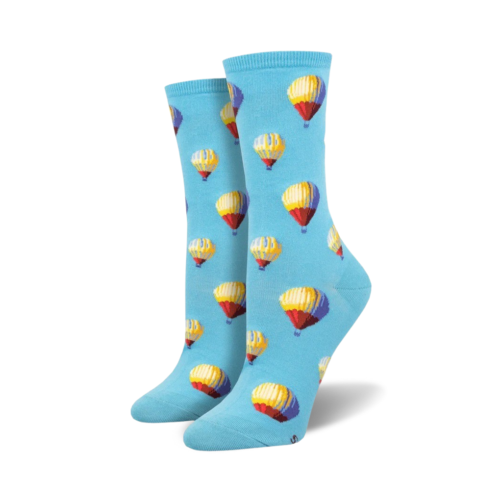 Own the skies and let your feet soar with our light blue Hot Air socks featuring a burst of color with hot air balloons. Perfect for the next time you are feeling "up up and away!" These socks will elevate your style to new heights!
