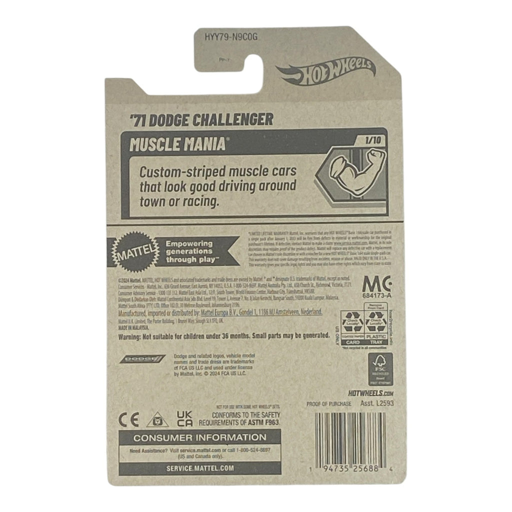 Unleash Classic Muscle: Hot Wheels '71 Dodge Challenger from Muscle Mania Series 1/10