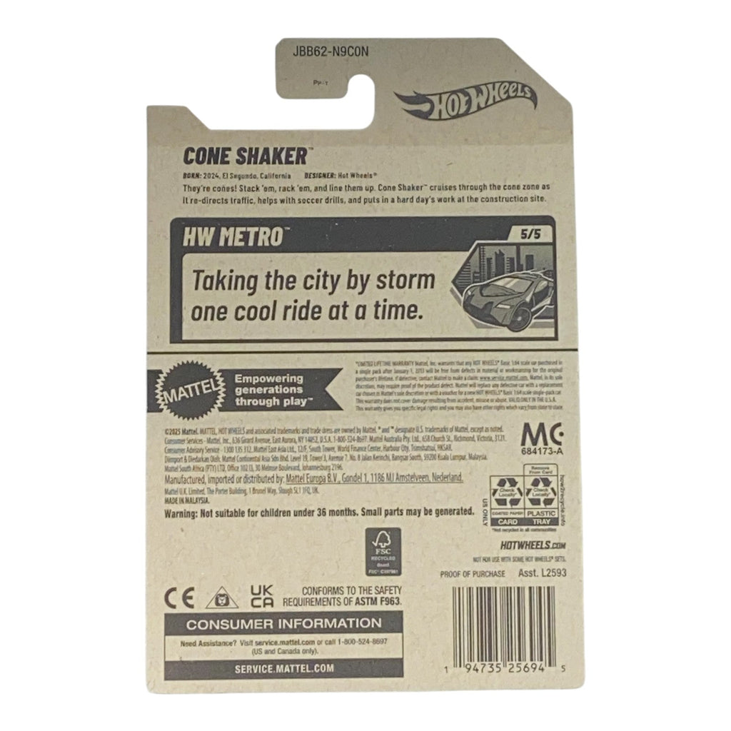 Zoom into urban adventures with the Green Hot Wheels Cone Shaker from the HW Metro Series 5/5! This vibrant 1:64 scale die-cast vehicle, inspired by a quirky traffic cone delivery truck, sports a bold green finish and eye-catching graphics, perfect for collectors and kids. As the final piece in the Hot Wheels HW Metro lineup, the Cone Shaker blends playful design with durable craftsmanship, making it ideal for high-speed chases on Hot Wheels tracks or as a standout display piece. Don’t miss this limited-edition gem from the 2025 HW Metro Series – grab the Green Hot Wheels Cone Shaker now to add quirky charm and urban flair to your collection!