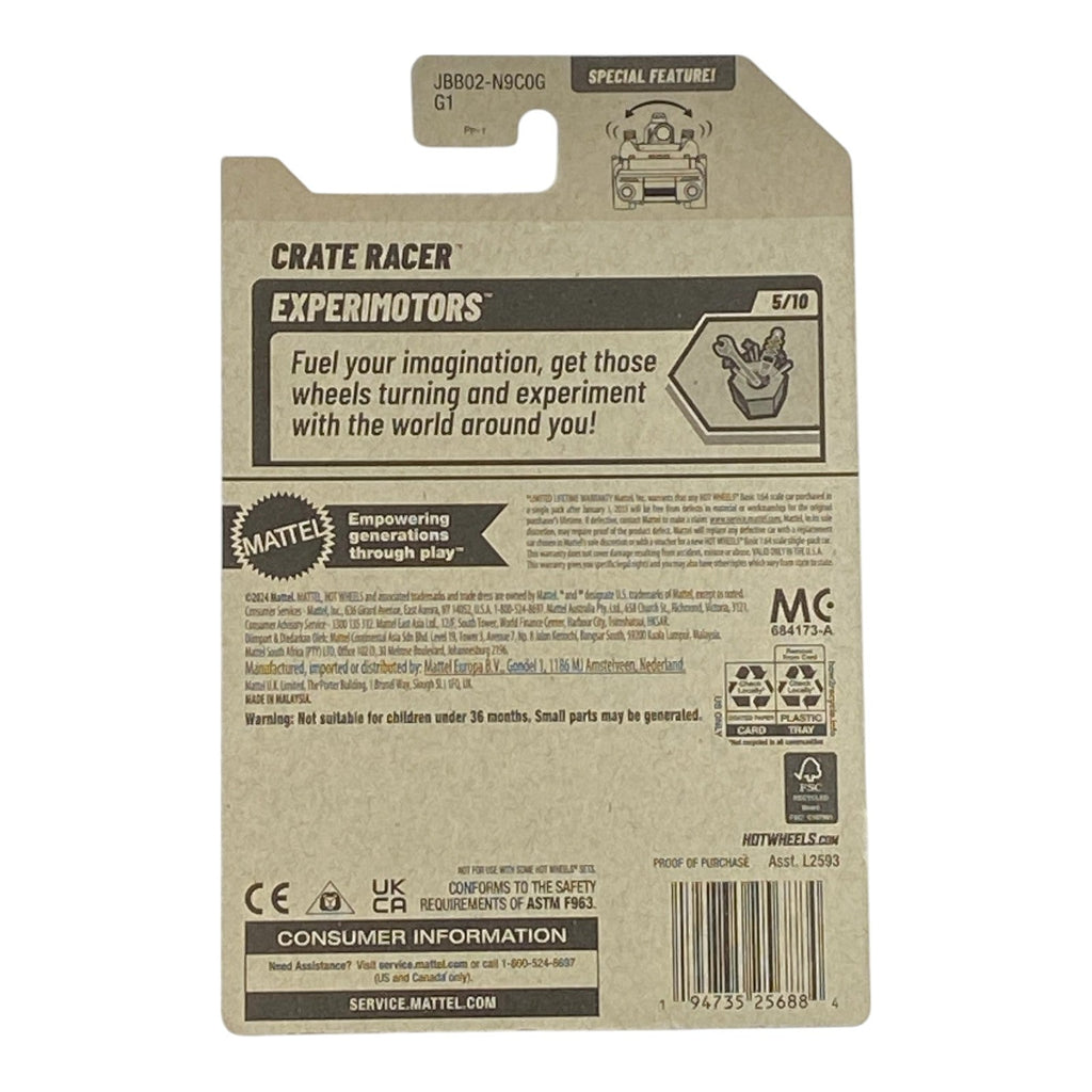 The Experimotors Series 5/10 features some of the most imaginative designs in the Hot Wheels lineup, and the Crate Racer is no exception. It is designed for those who love speed, performance, and excitement. This model captures the essence of racing culture while incorporating unique features that make it a standout choice. Your collection will not be complete without it!