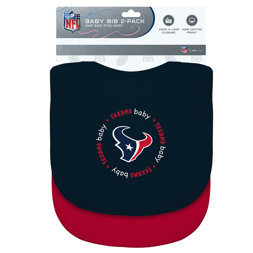 This MasterPieces Houston Texans NFL BabyFanatic Unisex Bibs 2-Pack is a must-have for every parent. These officially licensed bibs feature a 100% cotton front adorned with a beautifully embroidered team logo, showcasing your baby's team spirit from an early age. The polyester back ensures that spills and stains stay away from your child's adorable outfit. With a convenient hook and loop closure, these bibs are easy to put on and take off. Cleaning is a breeze as they are machine washable with cold water and like colors. Designed to fit most infants, these bibs grow with your little one throughout their fandom journey.