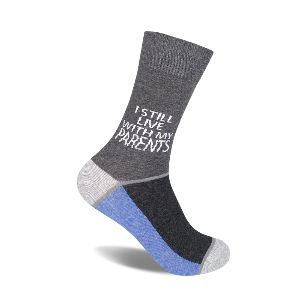 Let's face it, living with your folks can be a real heel. So why not embrace it in style with these tongue-in-cheek I Still Live With My Parents socks? Made with a comfy cotton blend and a snug crew fit, they'll keep your feet cozy while you're raiding the fridge late at night or avoiding doing laundry. Available in a rainbow of colors and styles, they're the perfect gift for any adult child who's still living with their parents - or those who just want to have a little fun. Wear them, tear them, wash and repeat!