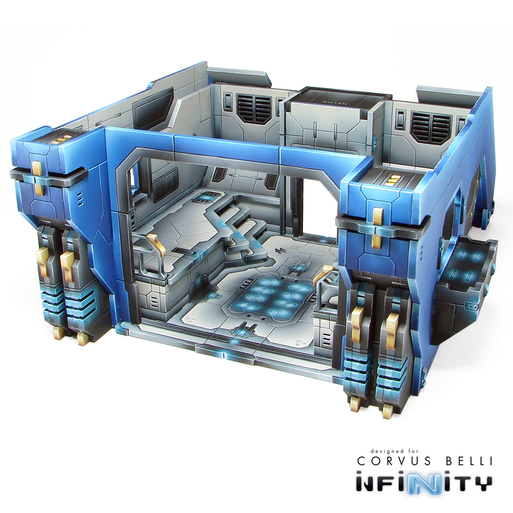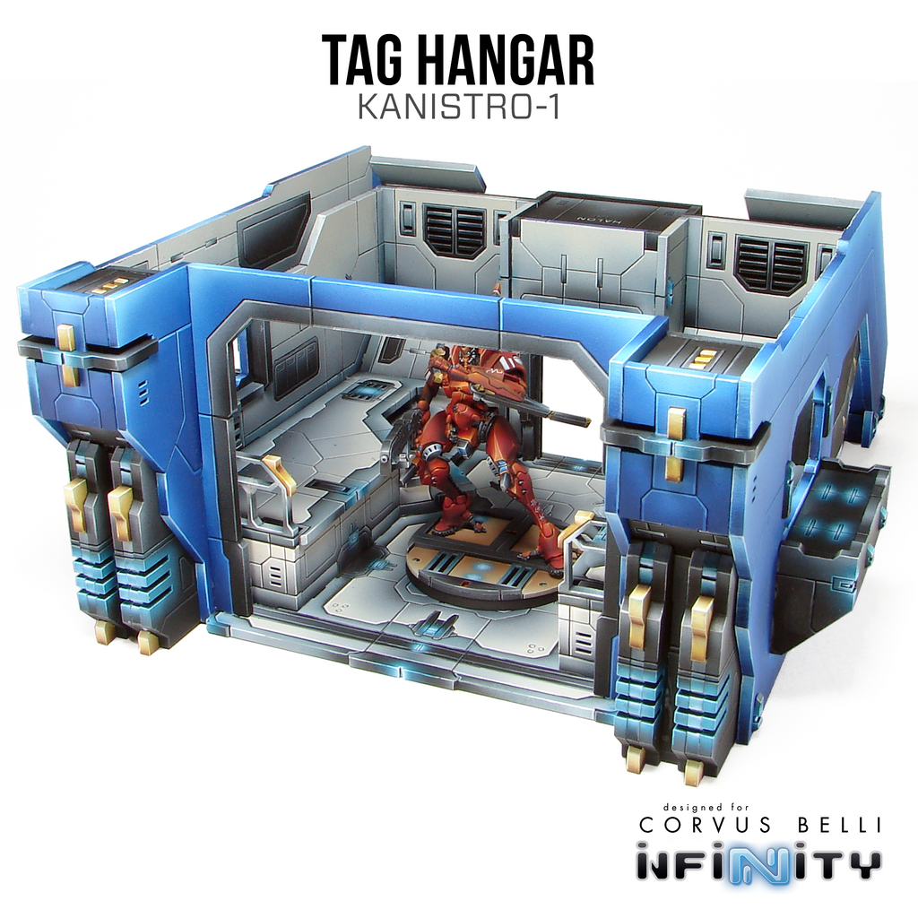 The Tag Hanger is a Medium 0-12 -themed building for Infinity the Game. This Building functions as a storage, repair, and arming facility for TAGS. It features a large cargo door, an S2 back door, and two shuttered side windows as well as two raised areas for TAG maintenance and arming.