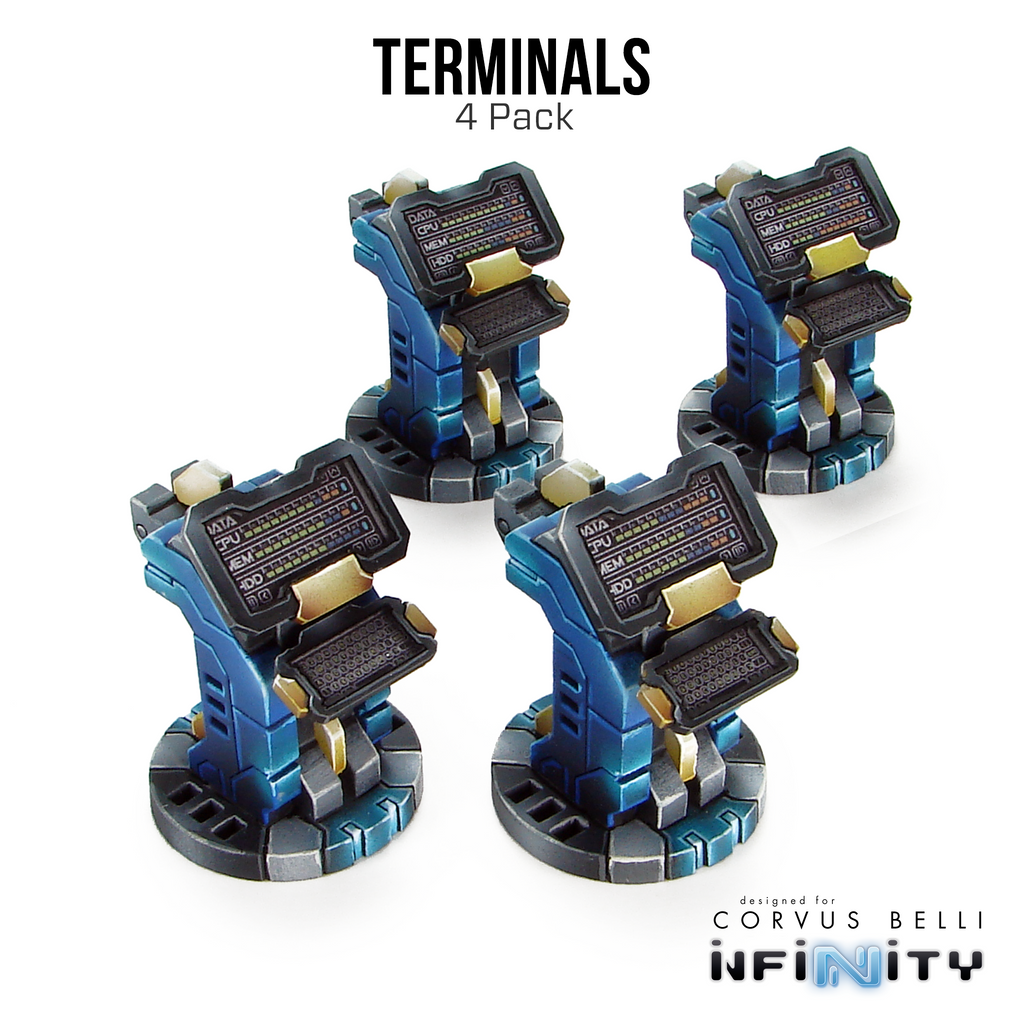 This kit contains four Terminals, perfect for any 28mm - 35mm sci-fi or near-future tabletop game. Great as tabletop scatter, or to use as objectives.