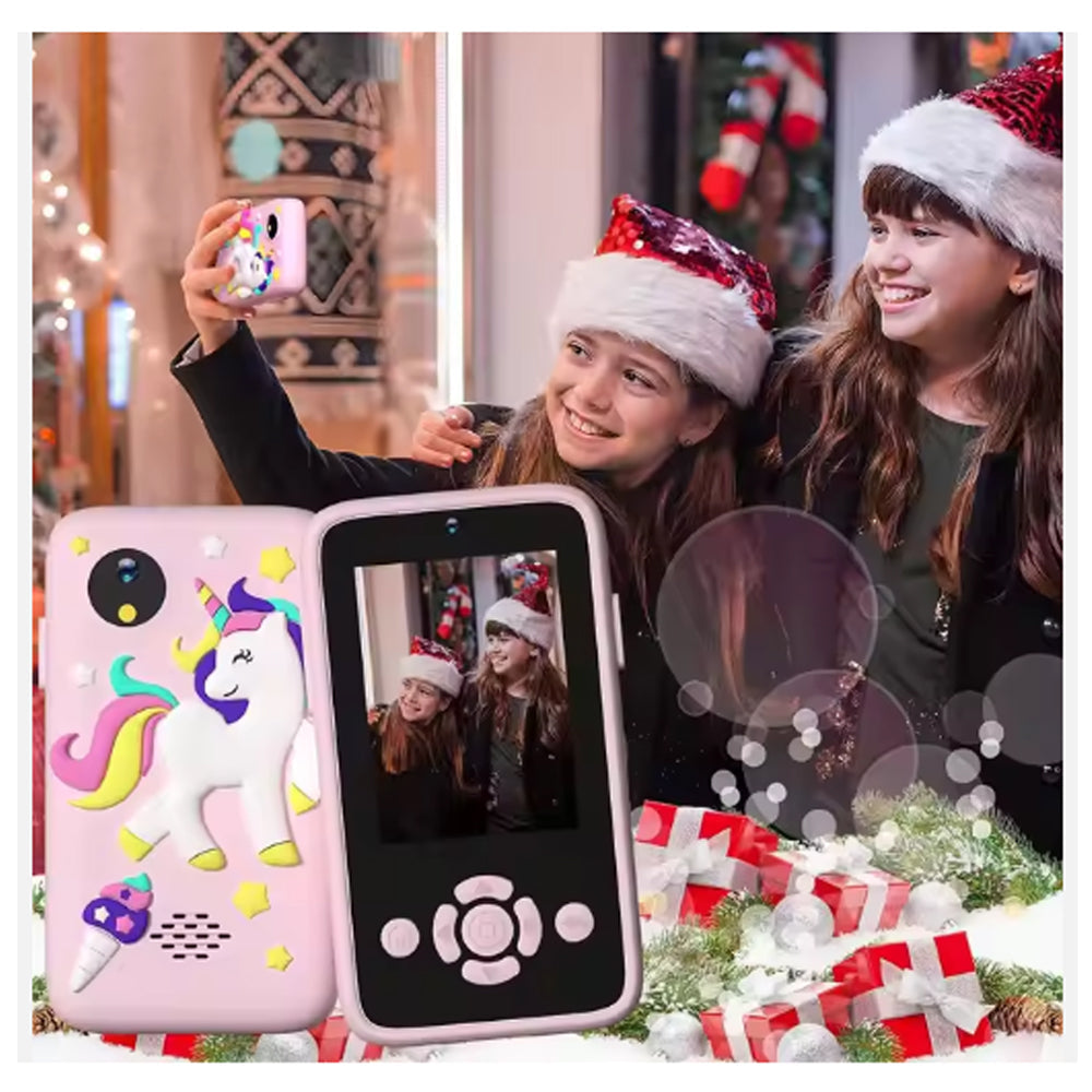 Kids Smart Phone - the ultimate toy for ages 3-8. With upgraded features like sight word learning cards, dual cameras, music player, and puzzle games, it offers endless entertainment. The soft silicone case provides effective anti-fall protection, ensuring durability. Perfect for birthdays or Christmas gifts, it fosters creativity and cognitive development in young girls.