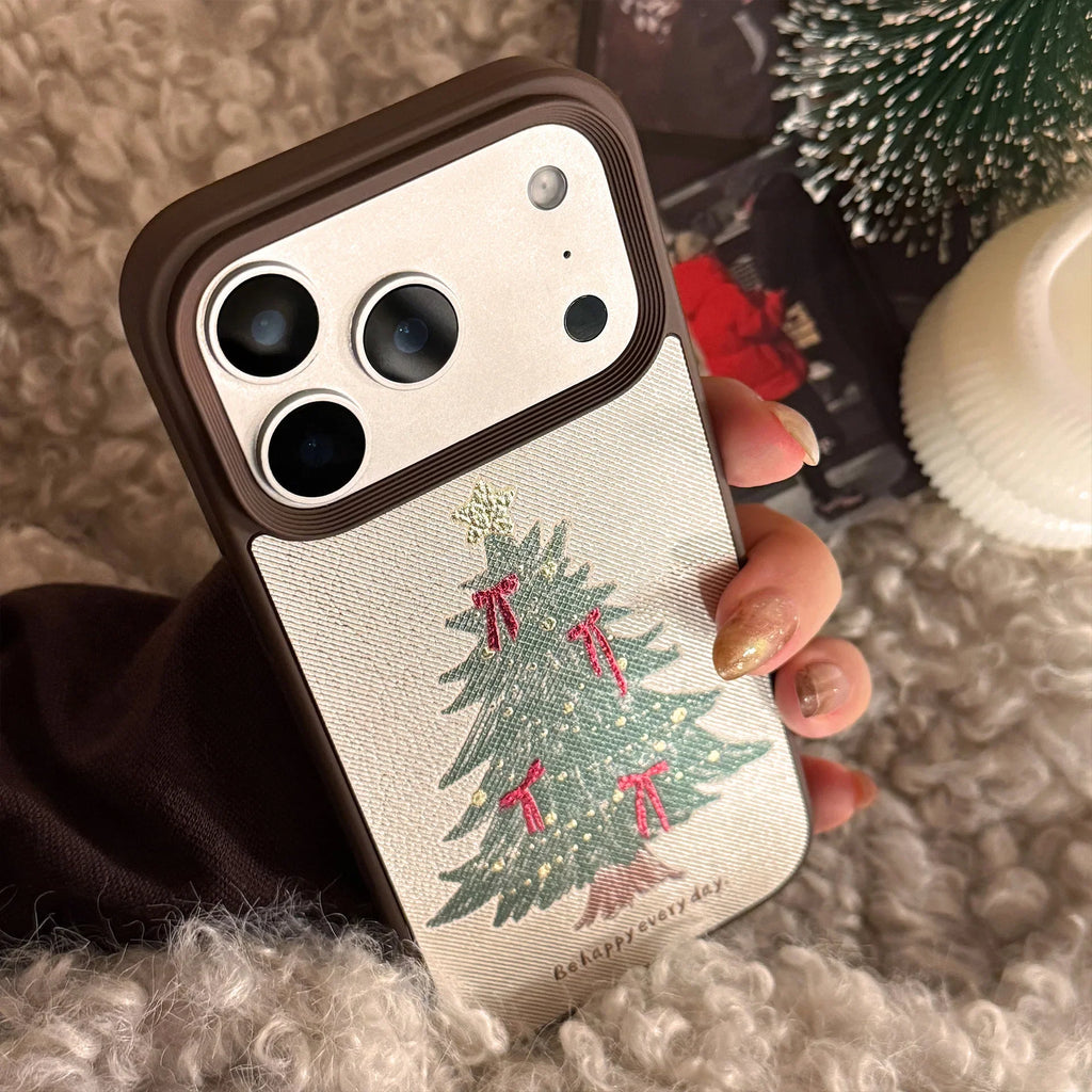 Korean Bowknot Christmas Tree Pattern Leather Texture Phone Case For iPhone