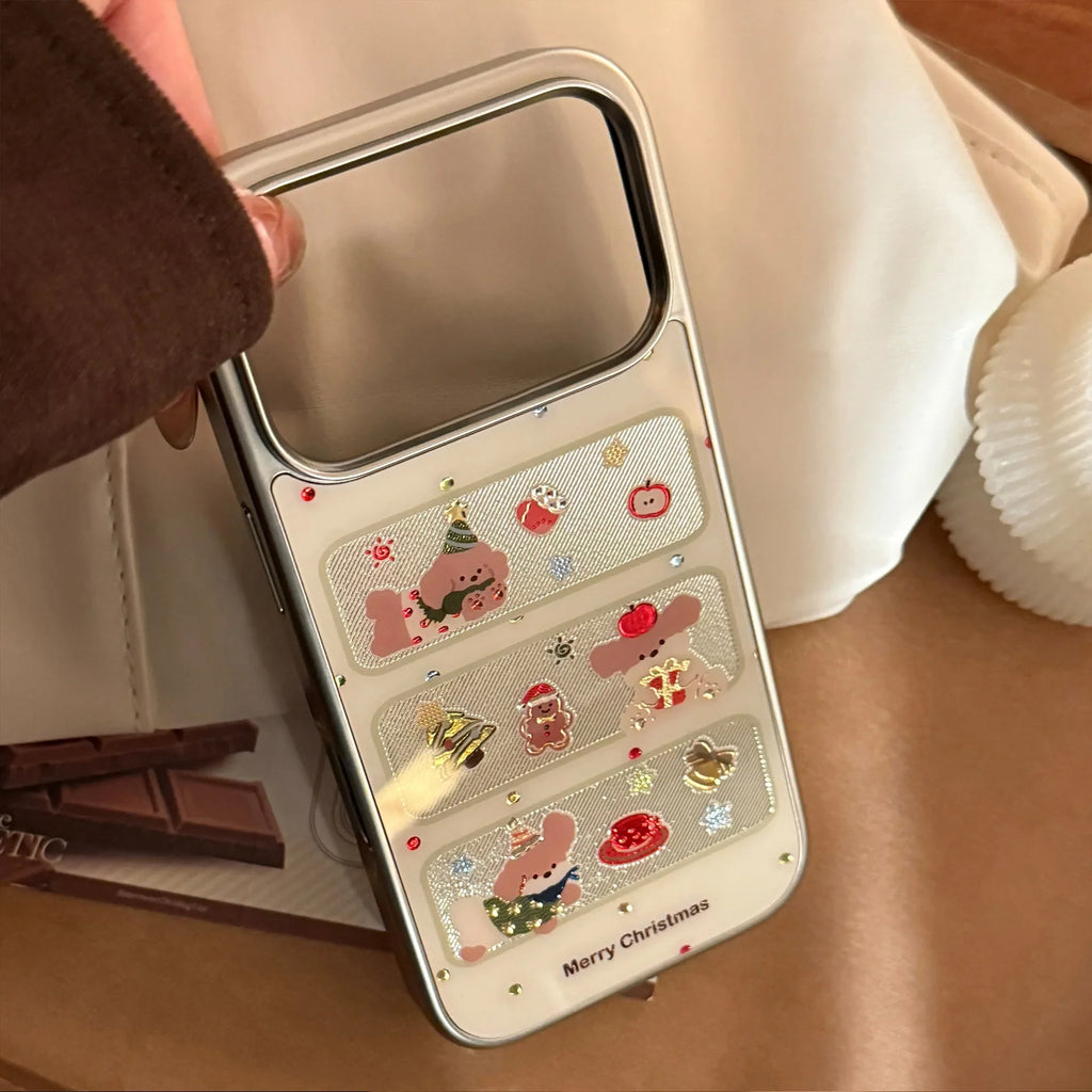 Korean Christmas Style Cartoon Puppy Silver Edge Plating Phone Case For iPhone
