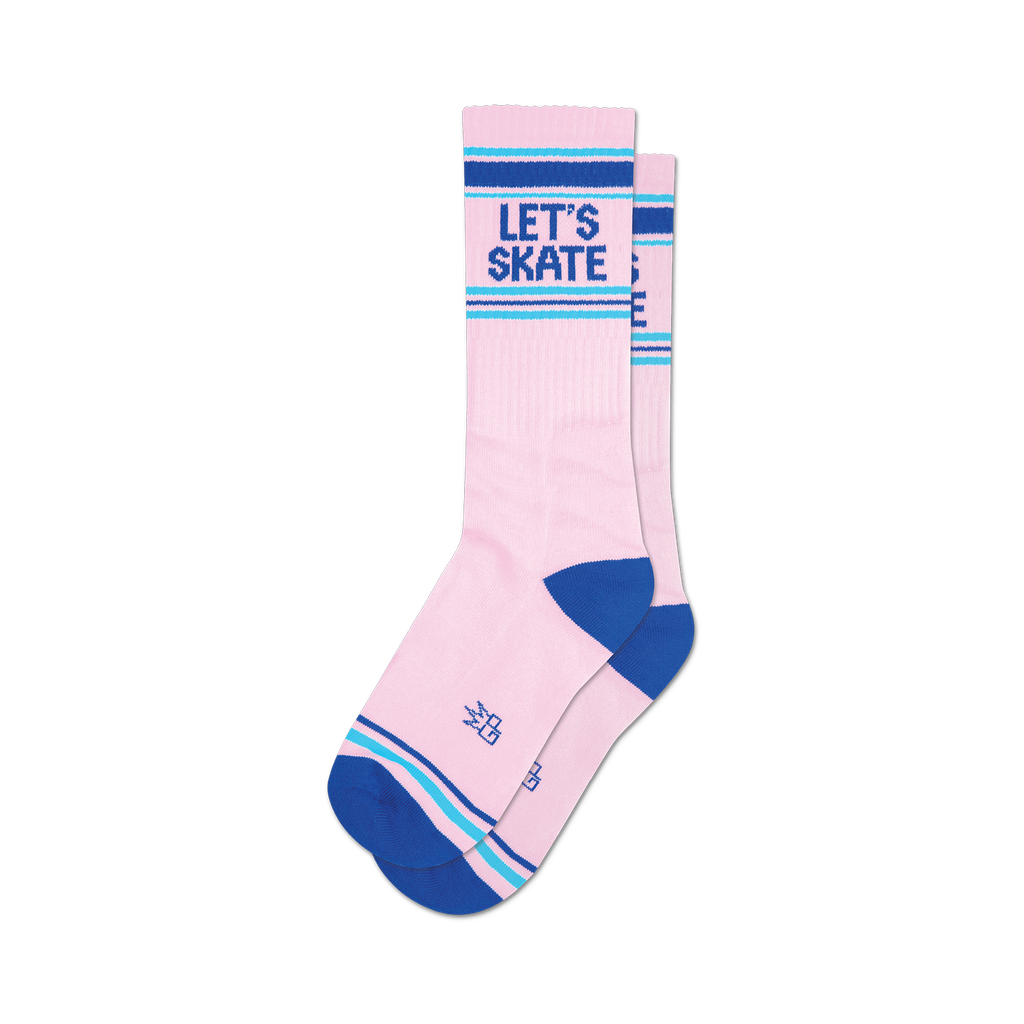 Slide into the spotlight with our 'Let's Skate' socks a playful blend of vibrant pink adorned with sky-high stripes and an invitation in blue that'll get your toes twirling in excitement! Perfect for the rink, these socks are just the ticket to add a pop of color and a dash of whimsy to your wardrobe. Whether you're gliding on ice or rolling at the rink, why not flaunt your fun side? Grab a pair, lace up those skates, and let the good times roll!