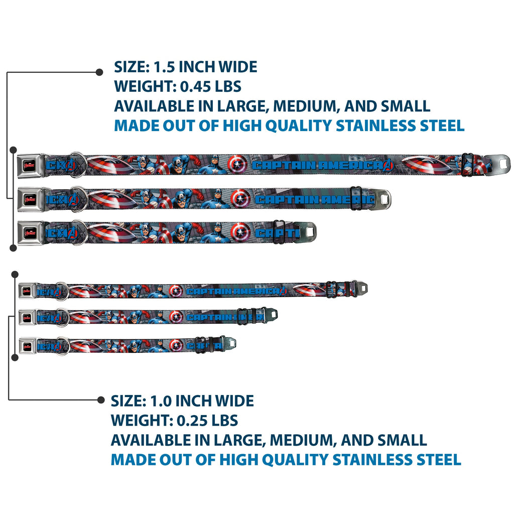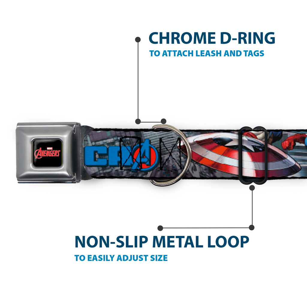MARVEL AVENGERS Logo Full Color Black/Red/White Seatbelt Buckle Collar - CAPTAIN AMERICA w/Avengers Logo Cityscape