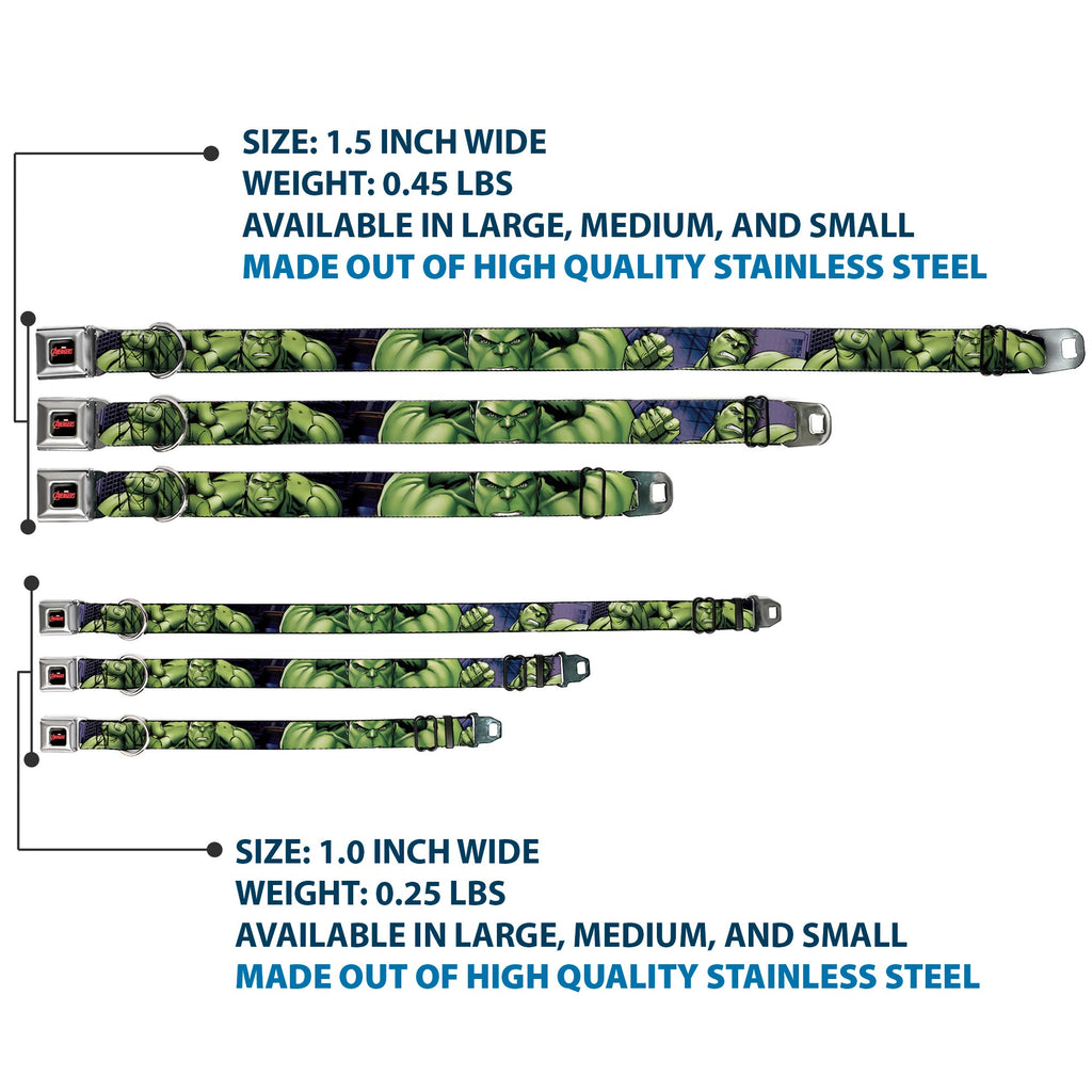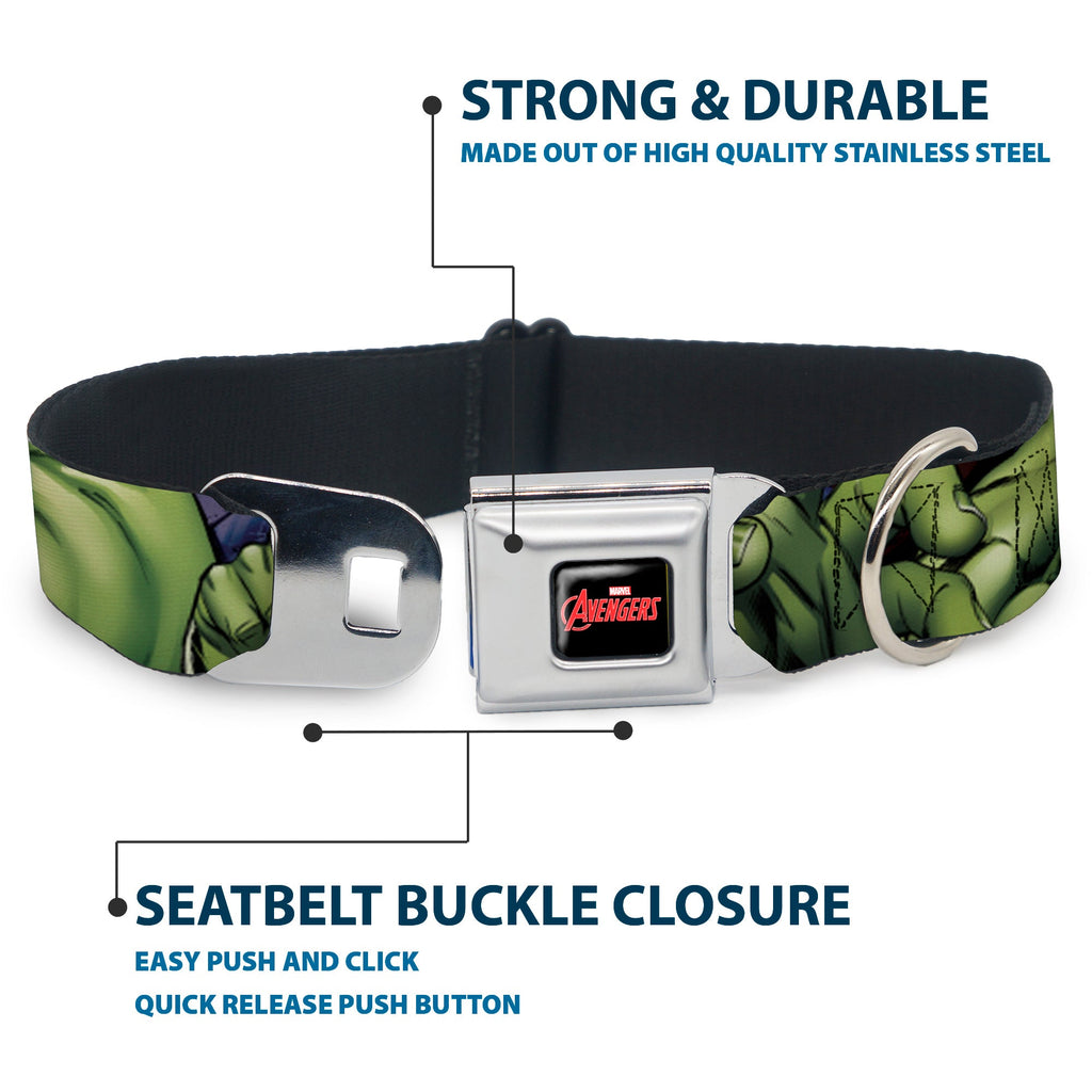 MARVEL AVENGERS Logo Full Color Black/Red/White Seatbelt Buckle Collar - Marvel Hulk CLOSE-UP Poses