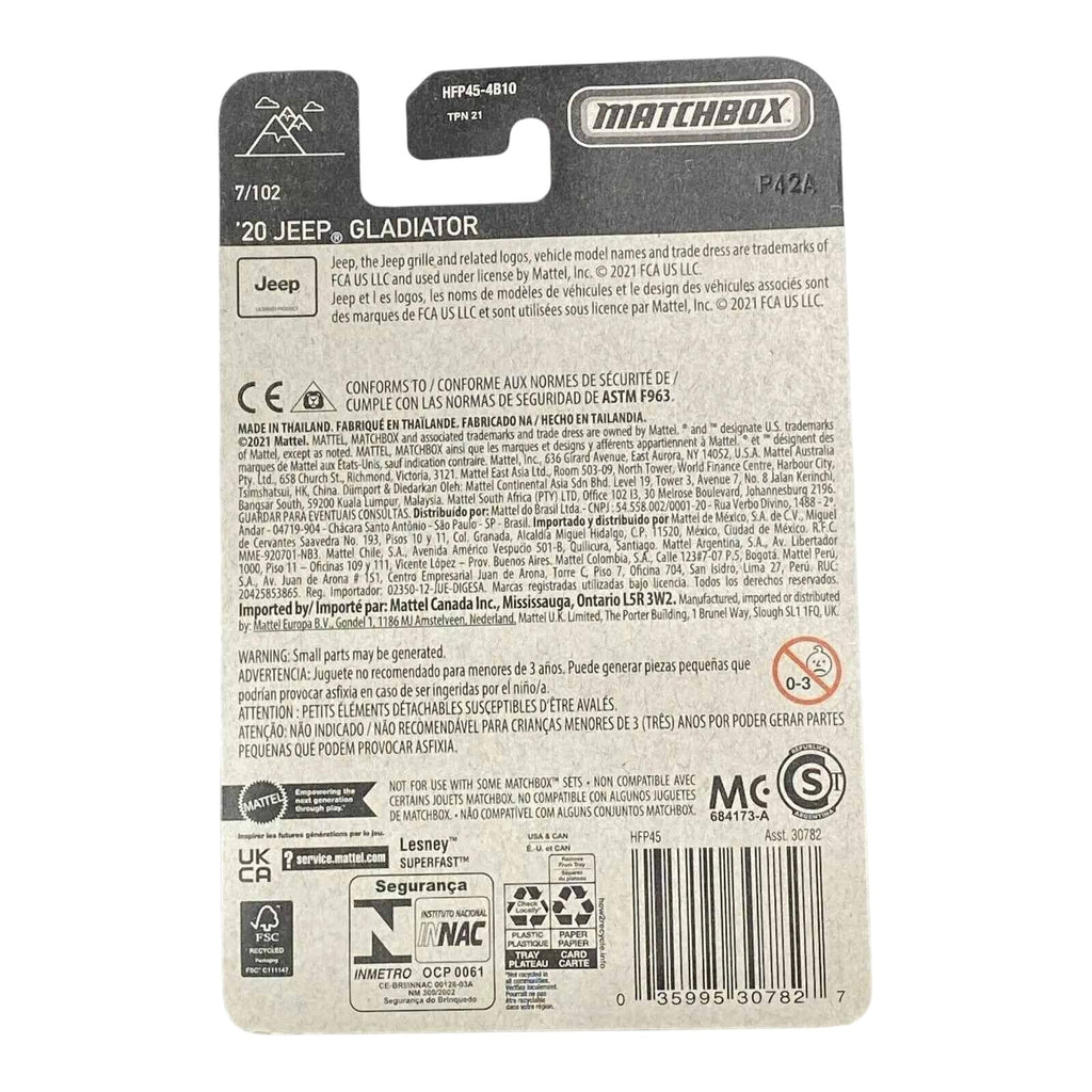 Designed for durability and playability, the 20 Jeep Gladiator is more than just a toy; it's an invitation to embark on countless imaginative journeys. With its impressive features, this Matchbox model stands out in any collection.