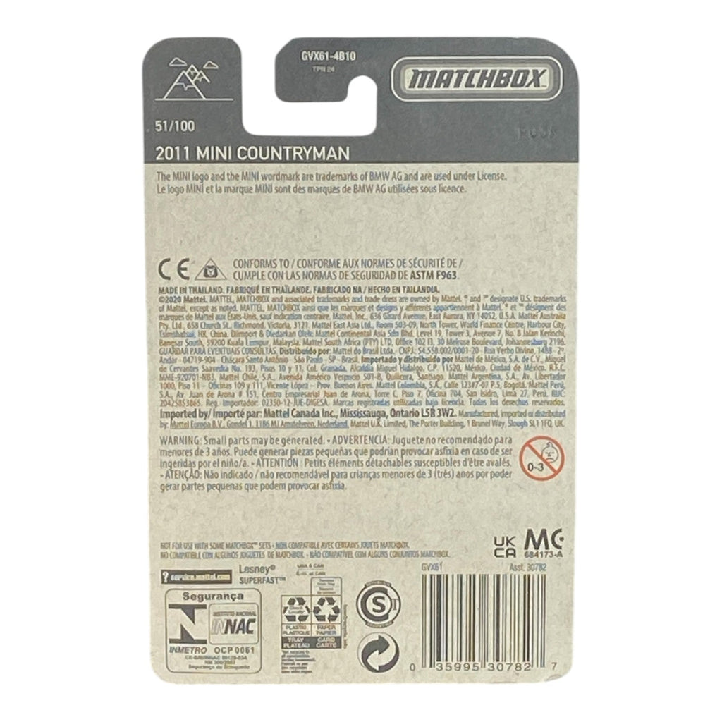 The Matchbox 2011 Mini Countryman is a remarkable addition to the Matchbox Series, embodying both style and practicality. This model captures the essence of the Mini Countryman, a vehicle known for its charm and versatility. In this detailed overview, we will explore the features and specifications of the Matchbox 2011 Mini Countryman, making it an essential piece for collectors and enthusiasts alike.