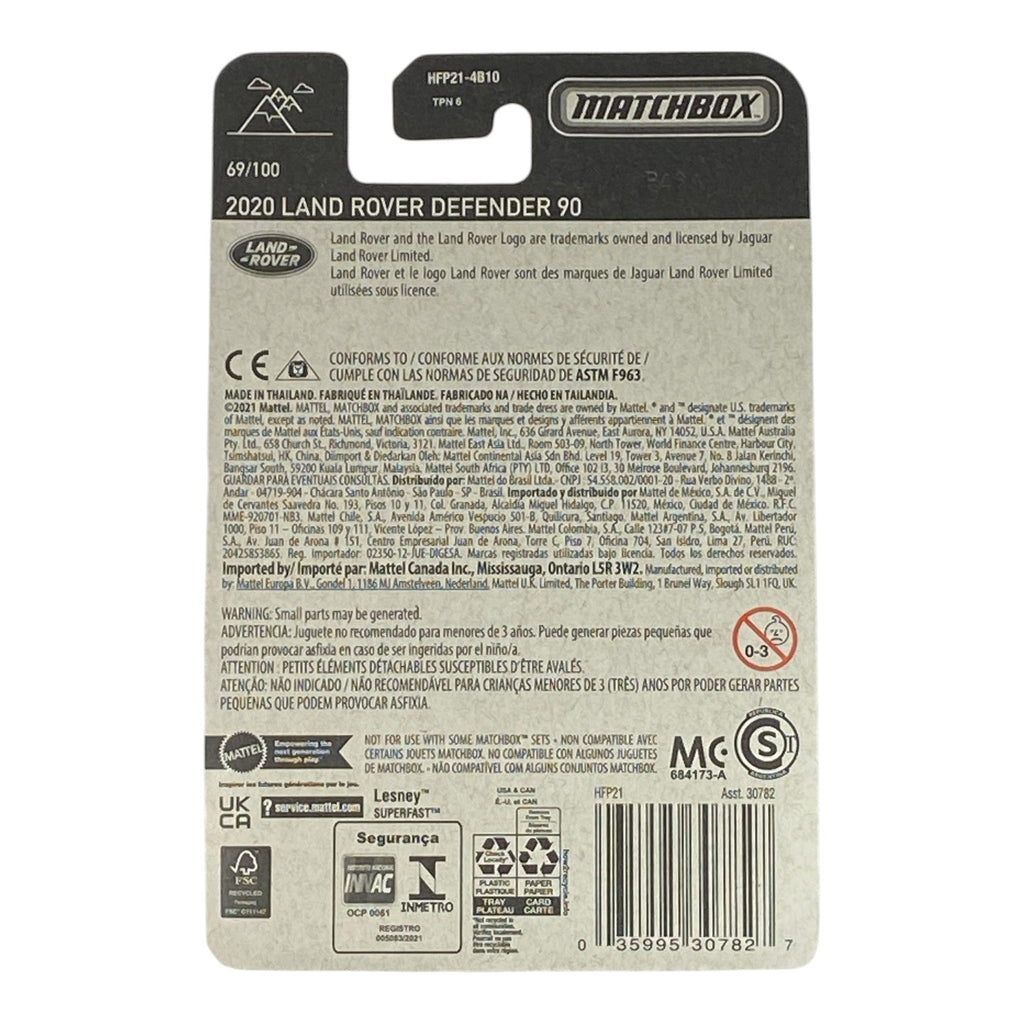 The Matchbox 2020 Land Rover Defender 90 is an exemplary scale model that captures the essence of one of the most iconic off-road vehicles. Ideal for collectors and children alike, this model is part of the renowned Matchbox Series 69/100, showcasing intricate design and attention to detail.