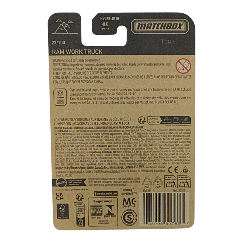 The Matchbox Ram Work Truck features essential elements that make it stand out in the Matchbox Series 23/100 lineup. Its realistic design and vibrant colors will catch the eye of anyone who sees it. The model is made from quality materials, ensuring both durability and longevity. Here are some key features: