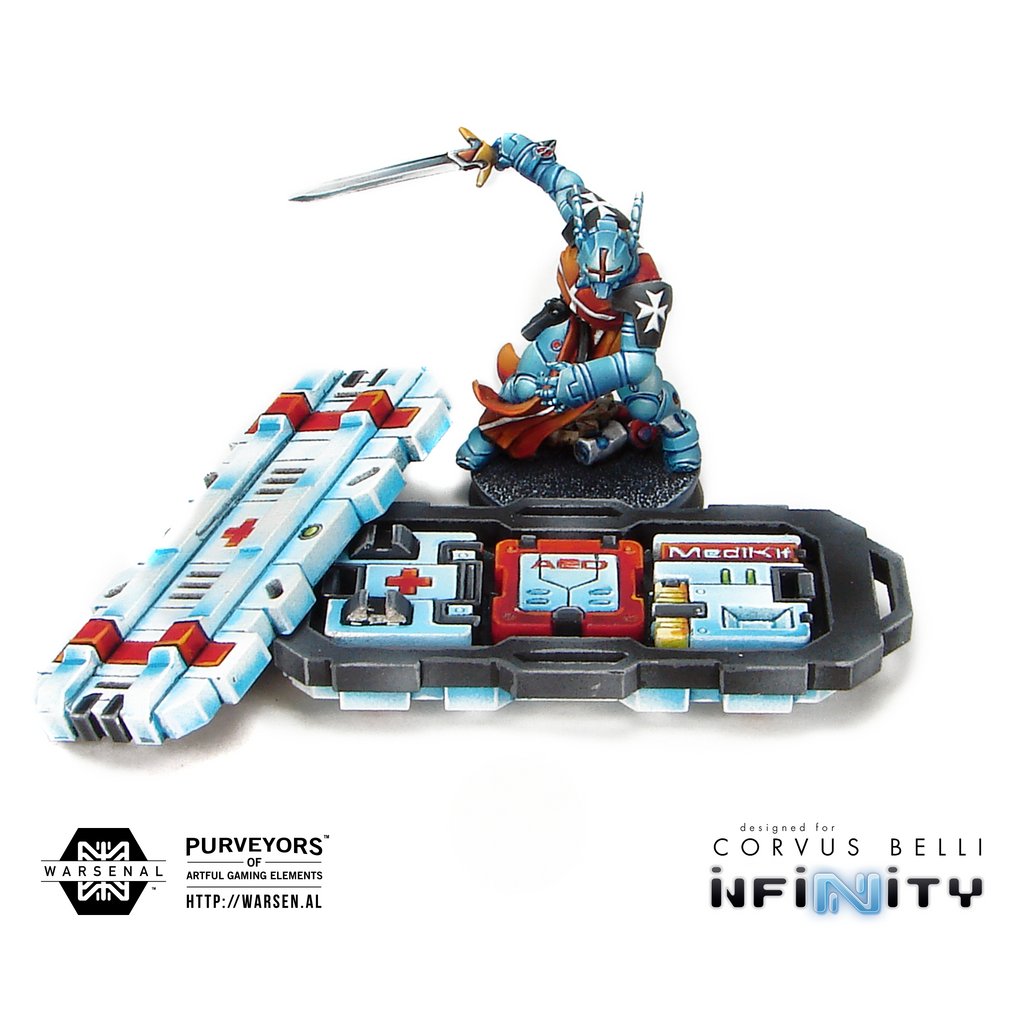 These medical caches are deployed from orbit and systematically dropped to provide soldiers deep in the field with first aid equipment. The container itself doubles as a stretcher/sled for medevac operations. This scatter terrain is designed for Infinity: the Game.