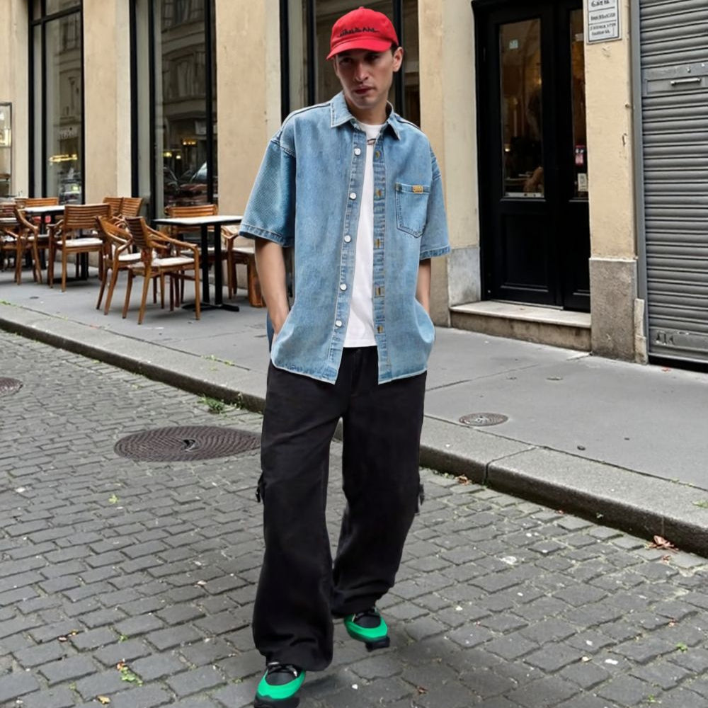 The Men’s Oversized Washed Denim Short Sleeve Shirt blends comfort and style for the modern man. With its versatile colors and relaxed fit, it’s your go-to for smart-casual flair, perfect for any laid-back yet stylish occasion.