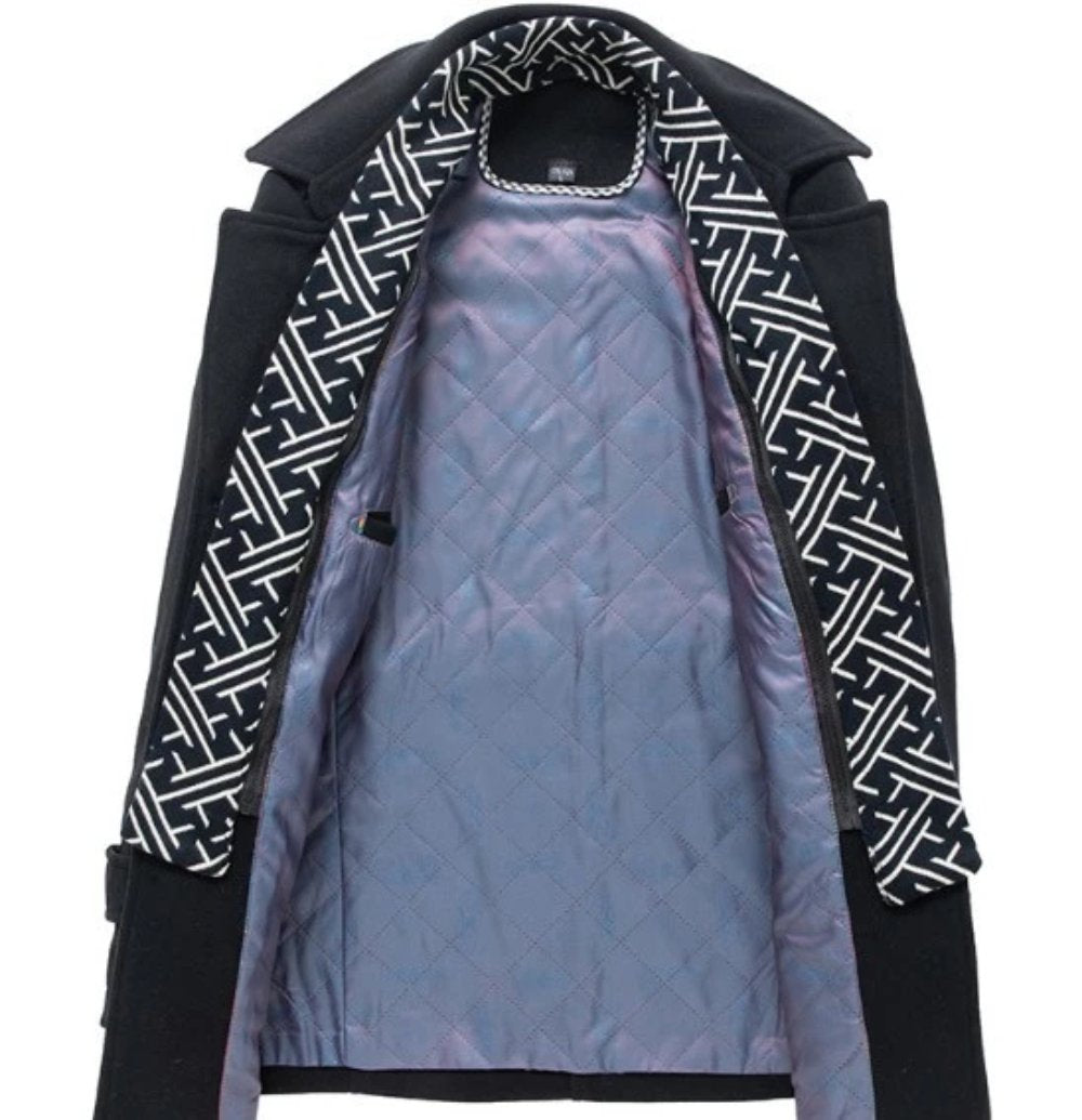 The Mens Business Casual Wool Blend Coat by Coseey is available in Navy, Black, Gray, and Khaki. Crafted from high-quality wool blend fabric, it offers both a refined look and comfortable wear throughout your day.