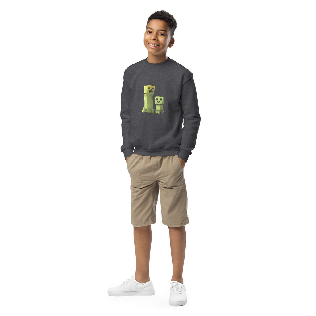 Keep your kids warm and stylish with this cozy youth crewneck sweatshirt featuring a bold Minecraft Creeper design. Perfect for adventures or relaxing at home, this sweatshirt is a must-have for young gamers.