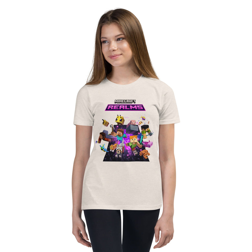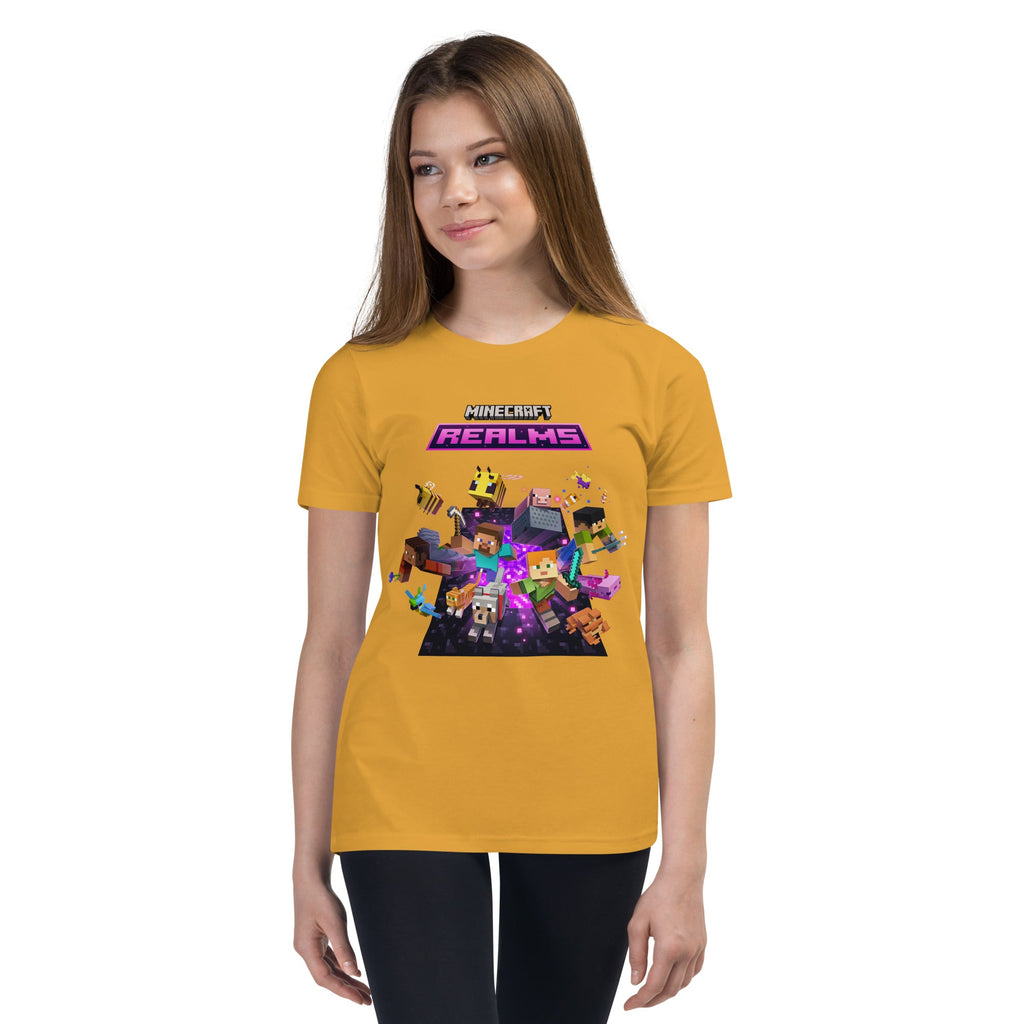 Elevate your child’s wardrobe with this comfortable and stylish short sleeve t-shirt featuring a vibrant Minecraft Realms Heroes design. Perfect for school, play, or casual outings, it’s the ultimate tee for young Minecraft enthusiasts.