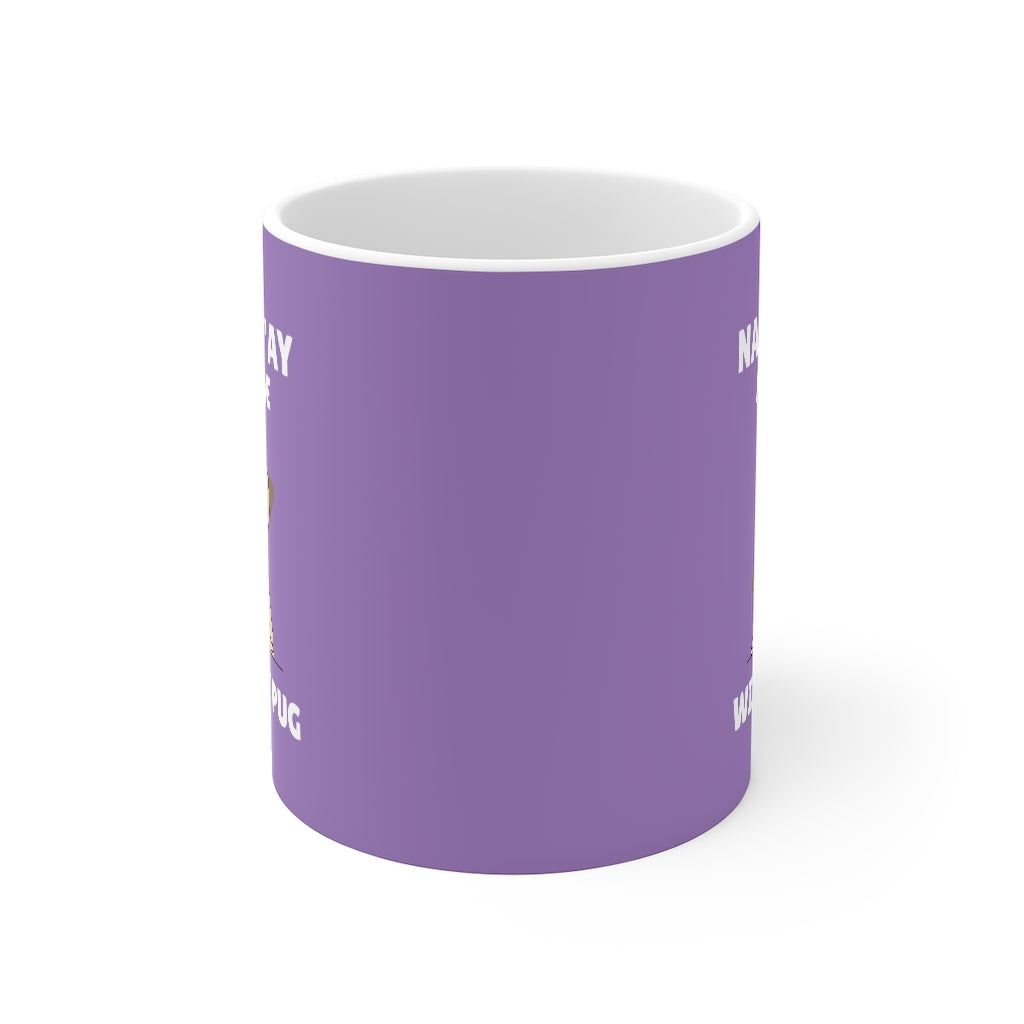 Namast'ay Home with My Pug Mug. Perfect for coffee, tea and hot chocolate, this classic shape white, durable ceramic mug.