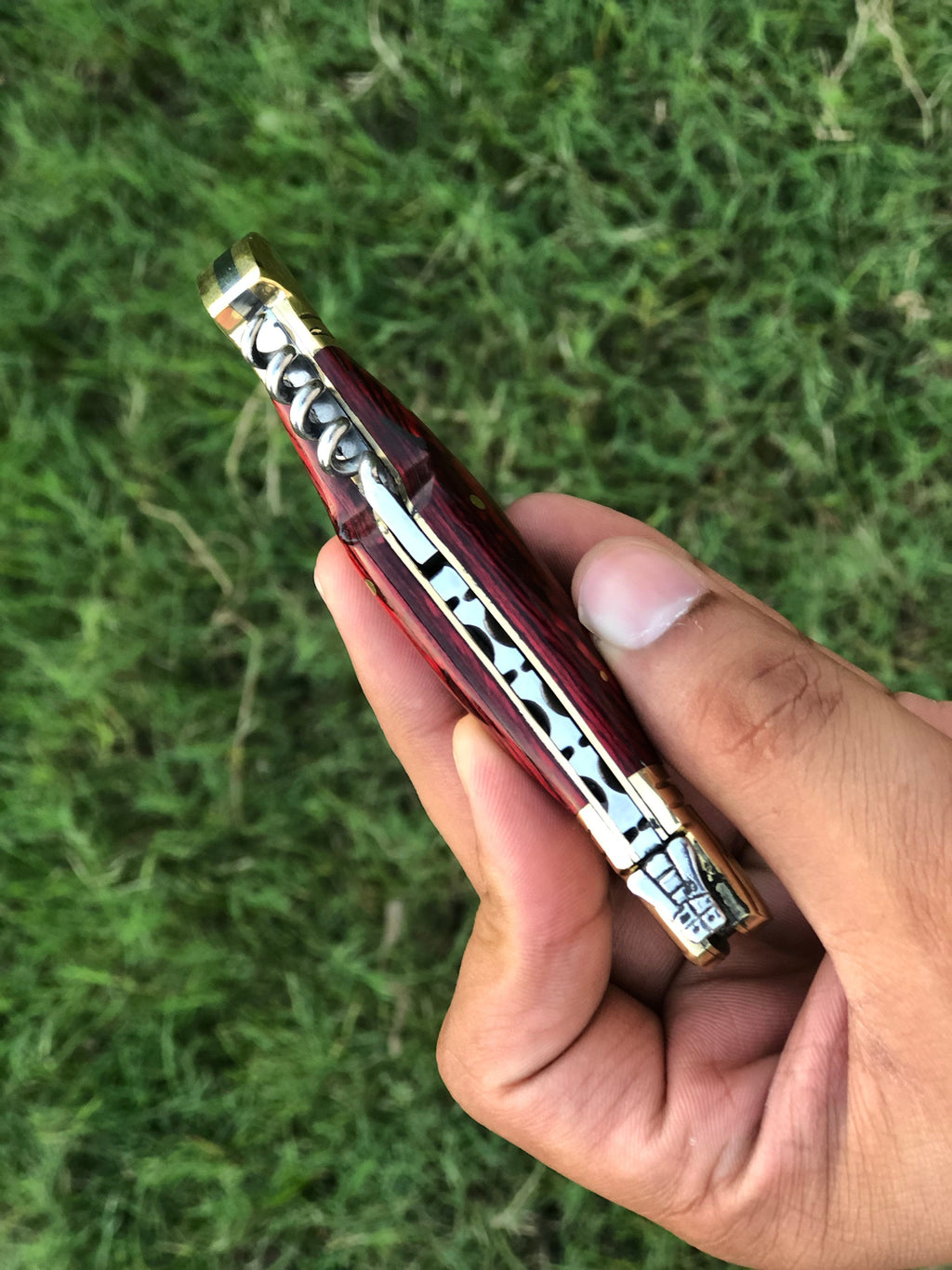New Custom Handmade Damascus Steel Steak Blade Pocket Knife With Corkscrew Wine Opener