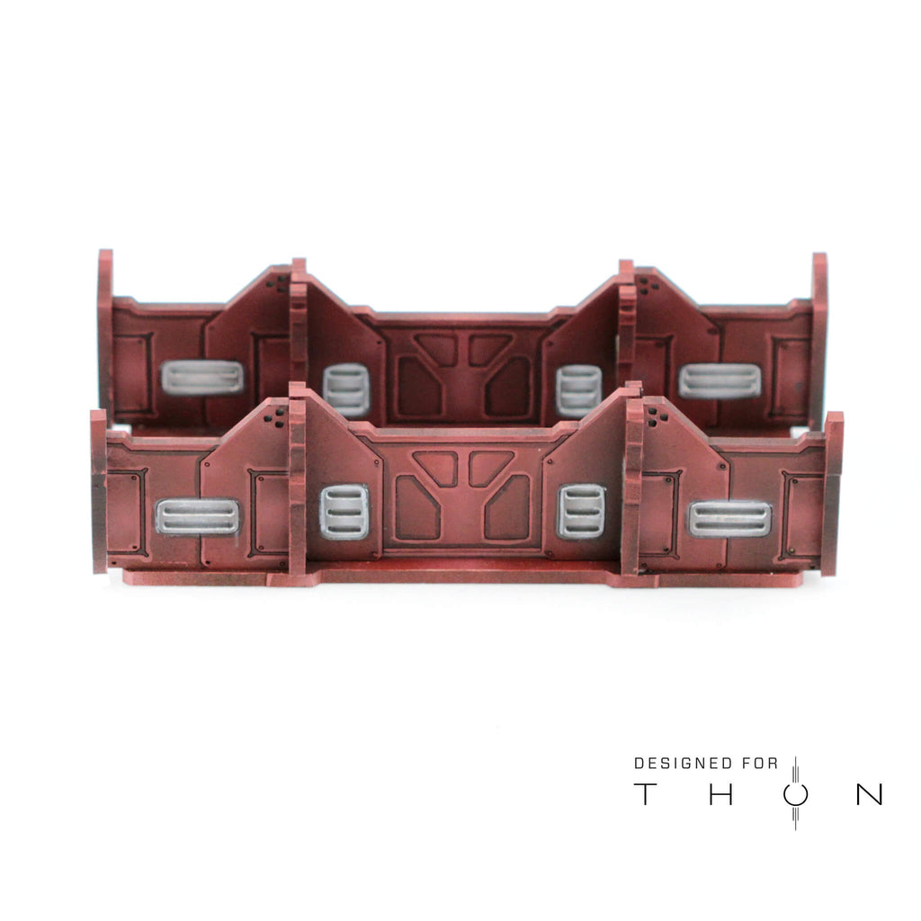 It includes two removable walls. All are interchangeable with the walls from the Ord Grudobran. This piece is designed to work as a roof for the Ord Braun. The walls are designed to connect to any wall in the Ord line.