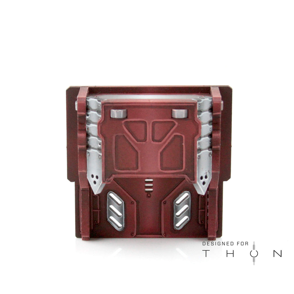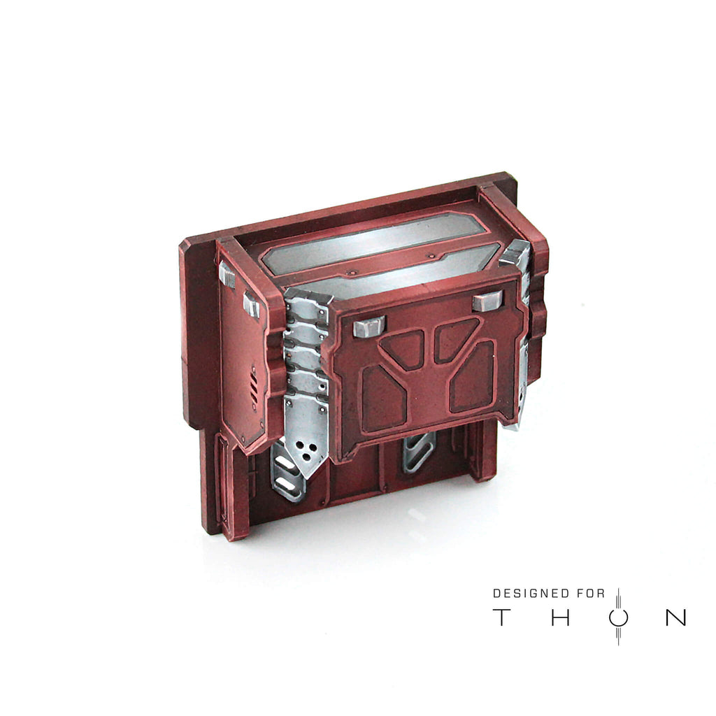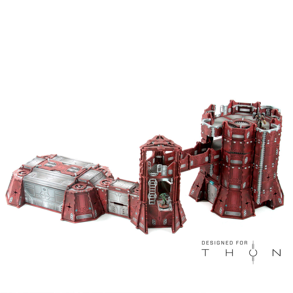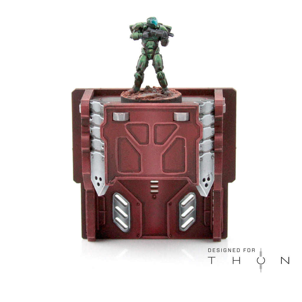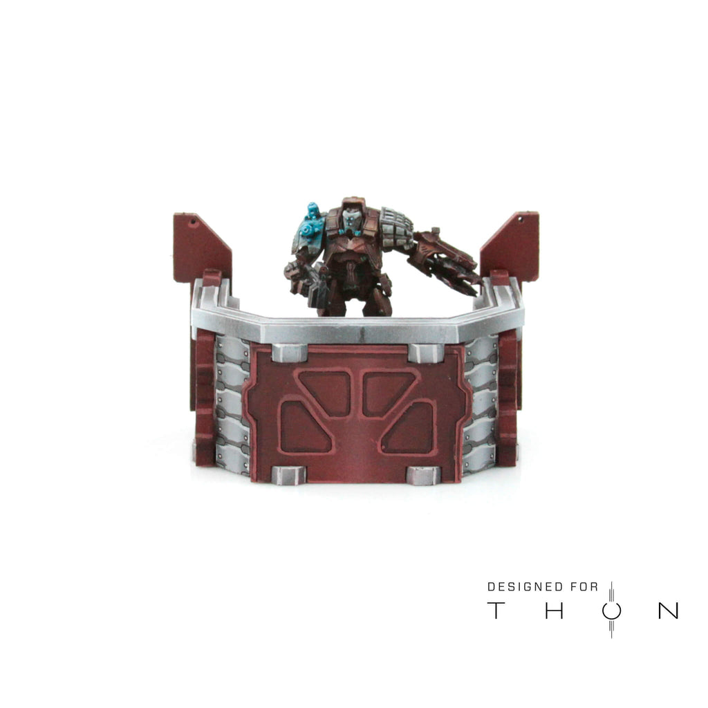 The Ord Pedestal is a two-piece modular insert for the Thon Ord range of terrain. It includes the Pedestal platform and the Scaffold balcony. Both are interchangeable with any of the walls or doors. They may be used together or individually for a variety of scenic effects.