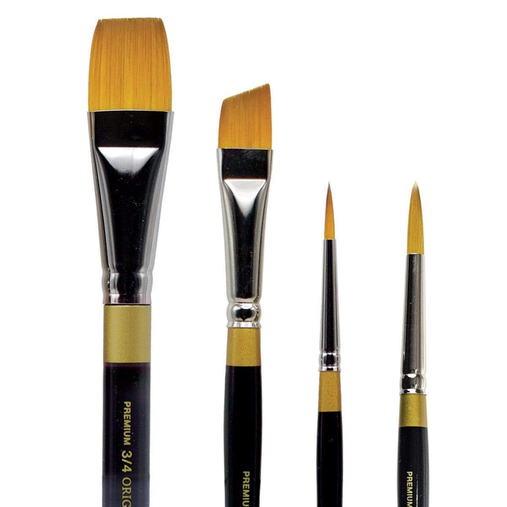 Original Gold® from KINGART®, offers a complete collection of multi-media painting brushes to help artists create the perfect masterpiece. The expert brush makers at KINGART® developed the best quality paintbrush for oil, acrylic, watercolor, and gouache painting. These brushes lend themselves beautifully to fine detailing, blocking, shading, lettering, applying washes and more. Each brush style is designed with its own special blend of luxury synthetic filaments for greater versatility, enhanced color-holding capacity, and precise color placement.