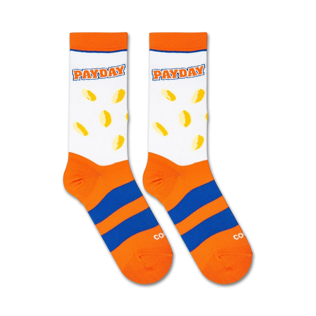 These payday crew socks celebrate that sweet, sweet feeling of getting paid. Adorned with dollar signs and the celebratory word "Payday" running along the top, they're comfy, cozy, fun, and remind you that you're worth every penny! Perfect for bringing a smile to your face and some fun to your feet on payday and everyday, these crew socks designed for both men and women are the ultimate way to enjoy the fruits of your labor!