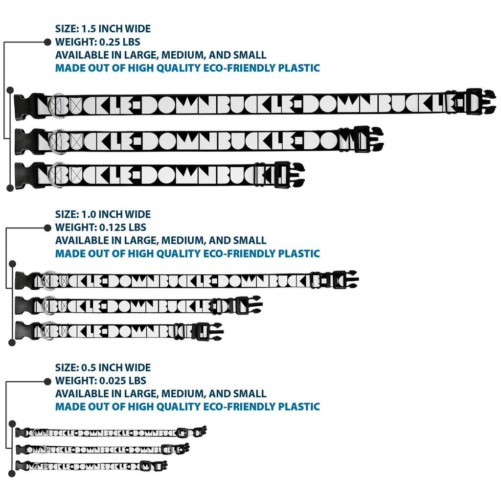 Vibrant and bold, this beautiful, polyester dog collar is made to show off your dog's unique style through all the seasons. With an overengineered plastic buckle and strong D-ring, this durable collar can hold up to whatever your dog can dish out. This product is officially licensed by Buckle-Down.
