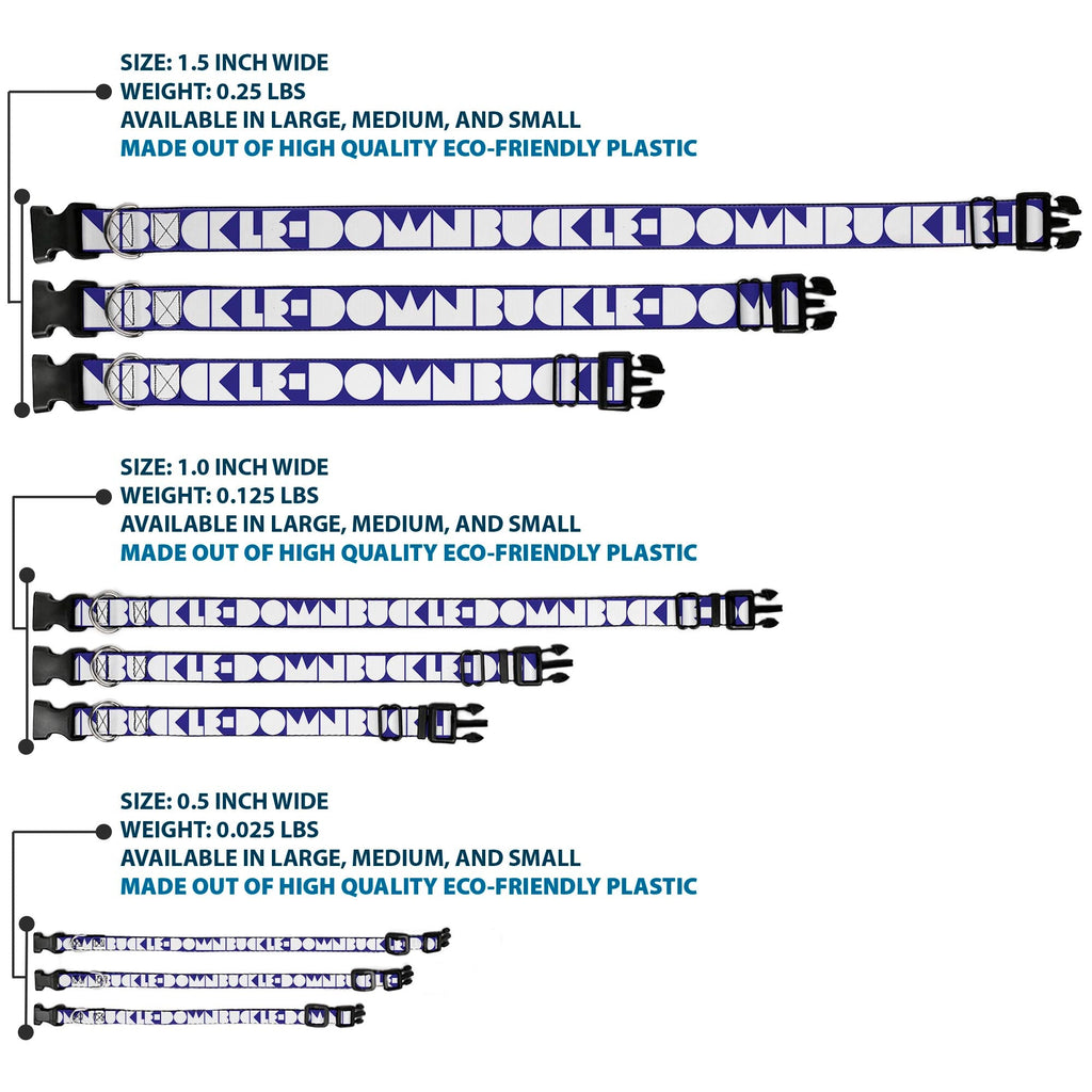 Vibrant and bold, this beautiful, polyester dog collar is made to show off your dog's unique style through all the seasons. With an overengineered plastic buckle and strong D-ring, this durable collar can hold up to whatever your dog can dish out. This product is officially licensed by Buckle-Down.