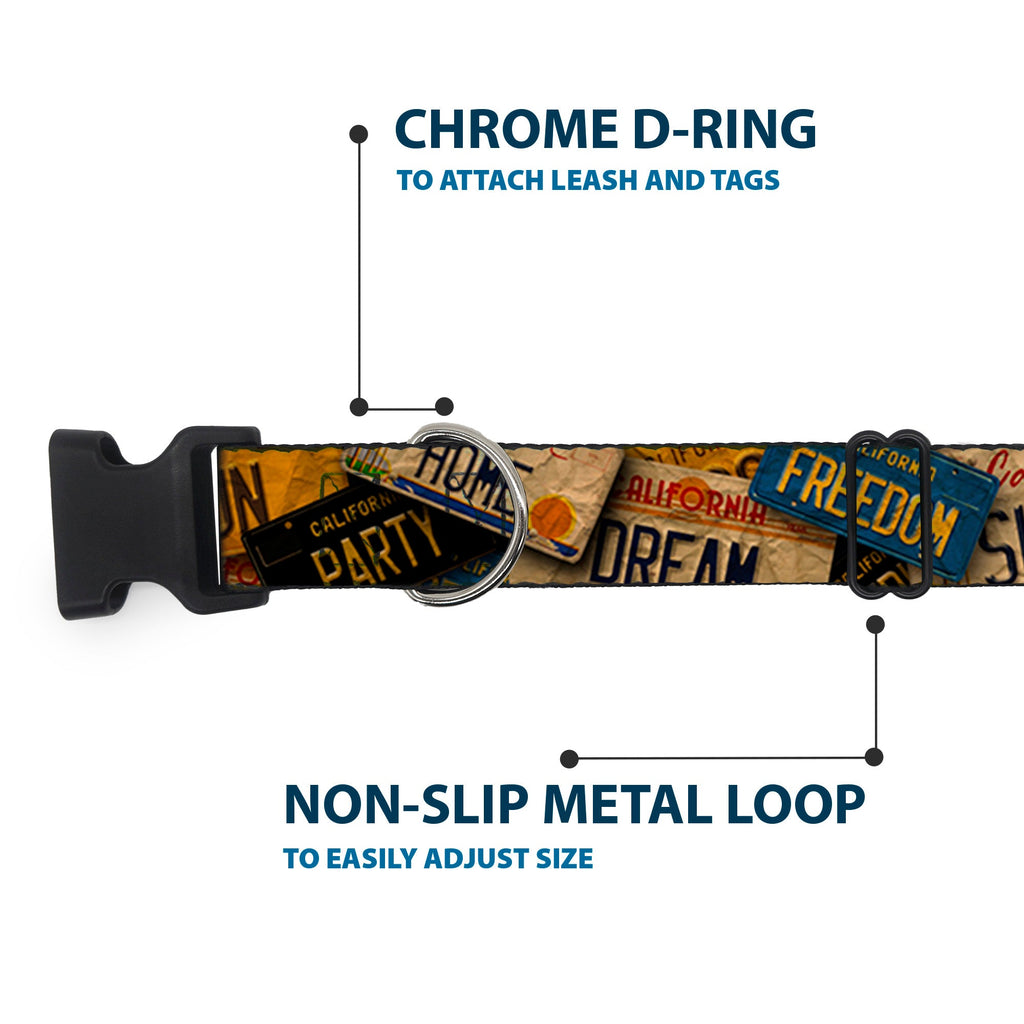 Plastic Clip Collar - Cali License Plates Stacked Vintage