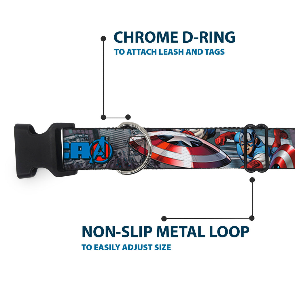 Plastic Clip Collar - CAPTAIN AMERICA w/Avengers Logo Cityscape