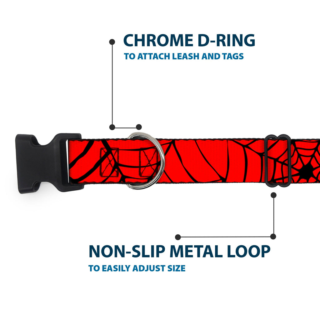 Vibrant and bold, this beautiful, polyester dog collar is made to show off your dog's unique style through all the seasons. With an overengineered plastic buckle and strong D-ring, this durable collar can hold up to whatever your dog can dish out. This product is officially licensed by Marvel Comics.