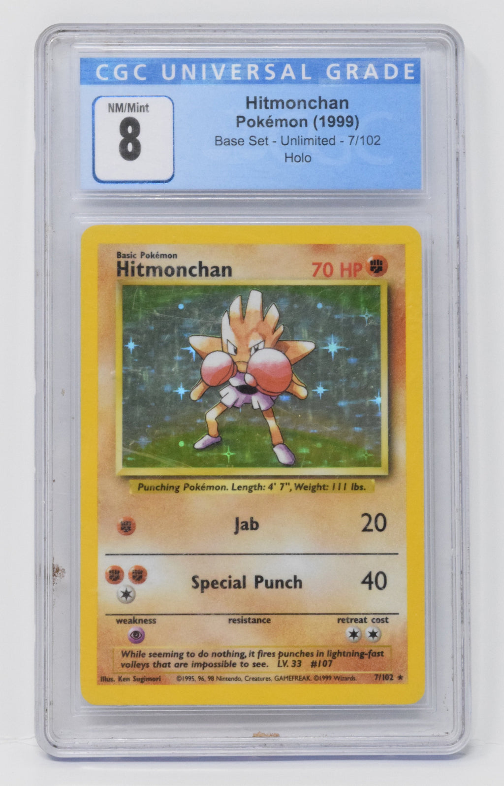Pokemon Hitmonchan Card Base Unlimited Holo 7/102 CGC 8