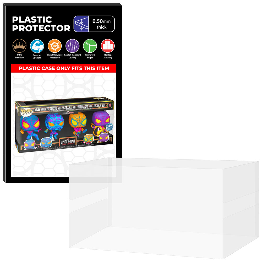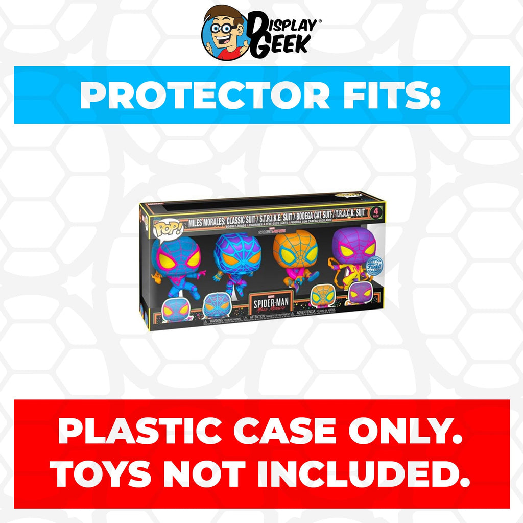 Plastic Pop Protector Compatible with 4 Pack Blacklight Miles Morales: Classic Suit, S.T.R.I.K.E. Suit, Bodega Cat Suit & T.R.A.C.K. Suit Funko Pop