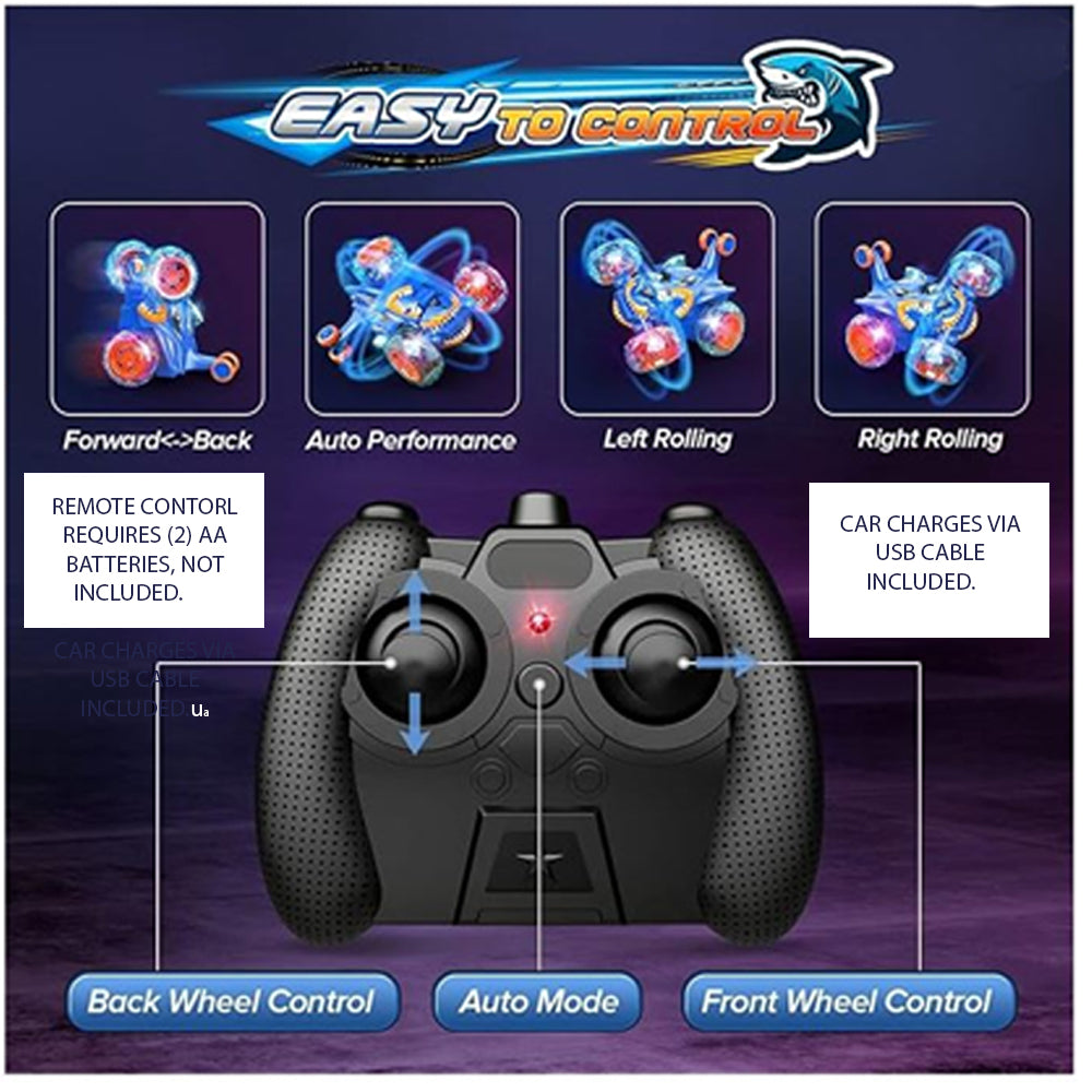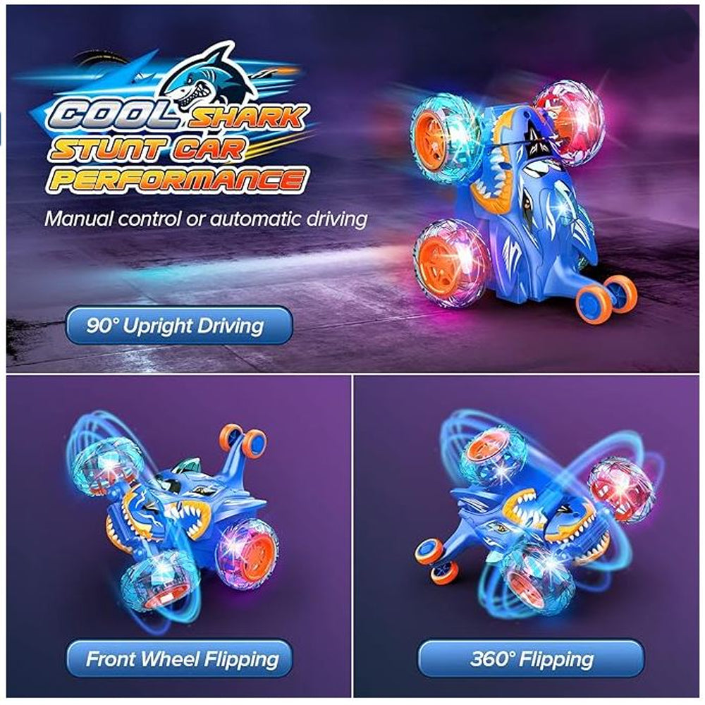 🚗【Unique Cool Design】Our remote control car has a cool shark shape and dazzling built-in LED lights, making your toy cars the most unique and novel among the crowd! The stunts of thrilling 360-degree rotation and 90-degree upright sliding will surprise many others.
