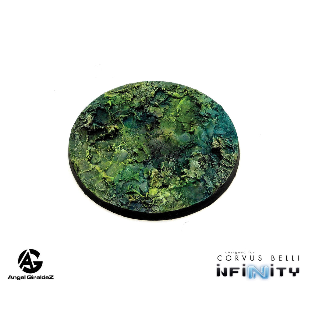 Tohaa-themed Runohaa resin bases designed by Angel Giraldez! This set is designed in an alien landscape style for Infinity the Game.