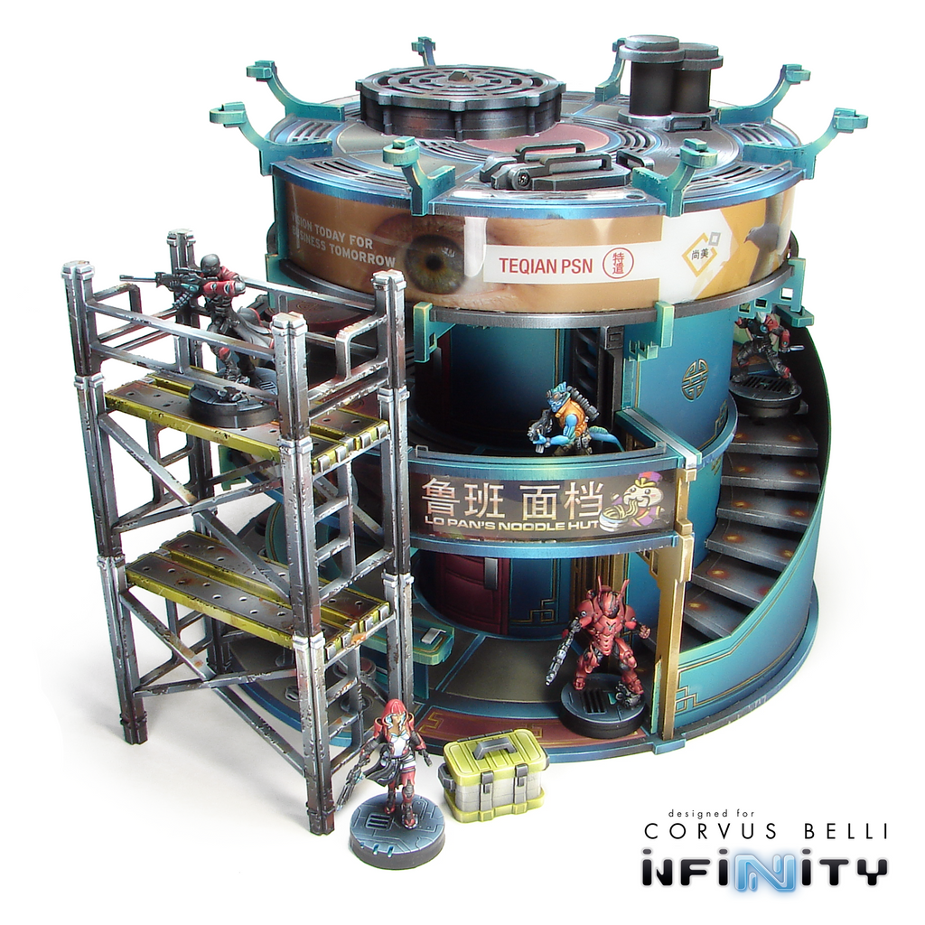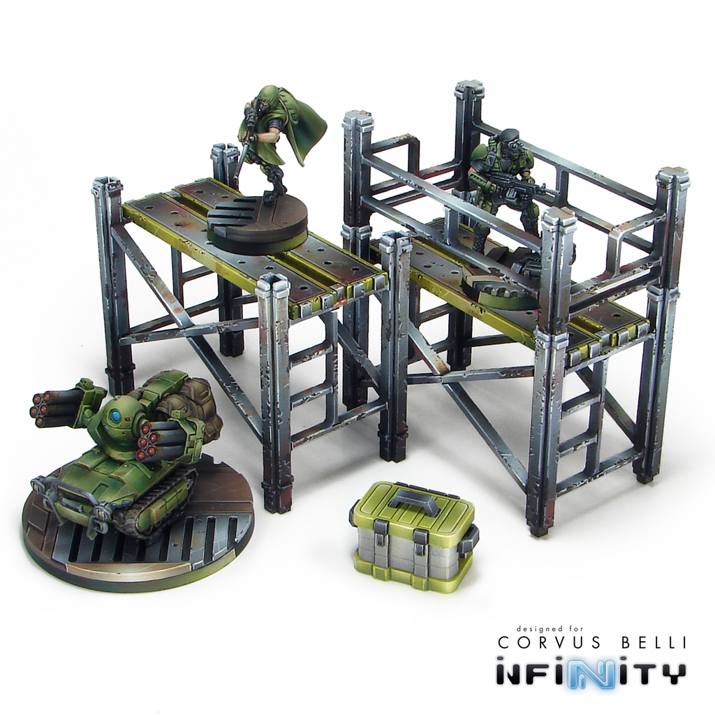Minature Scaffolding perfect for any 28mm - 35mm sci-fi, modern, or near-future tabletop game. Great as table-top scatter, or to add to the side larger buildings as a means of increased verticality and access to high rooftops or additional story's