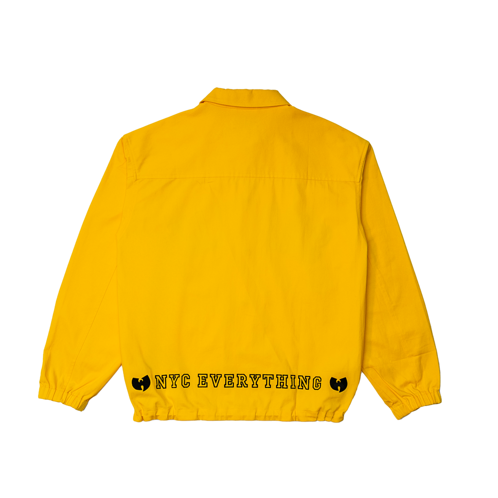 This coaches jacket features a sleek shaolin embroidery on the chest and nyc everything printed on the lower back.