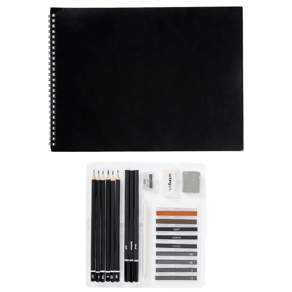 KINGART® Studio Sketching & Drawing Set, 24 Piece Sketchbook & Pencil Set