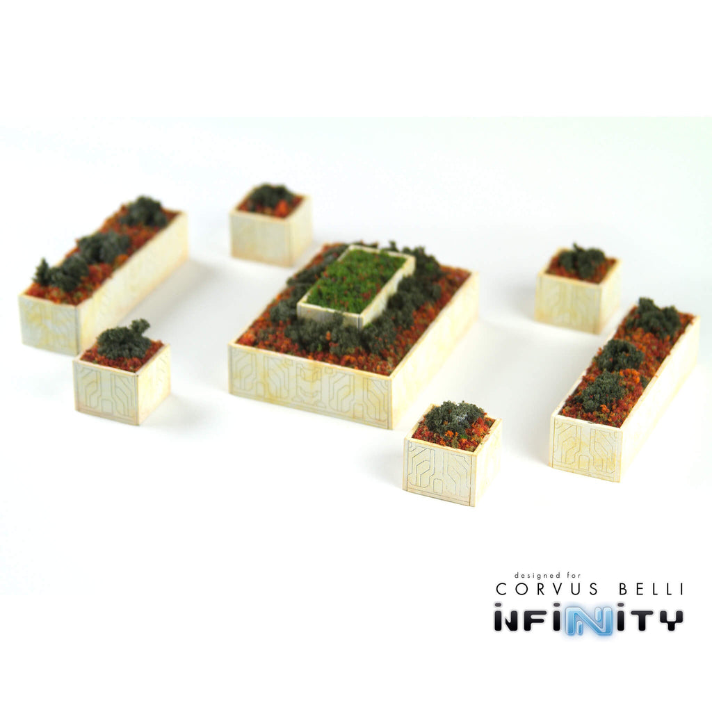 These planters make beautiful scatter terrain, and can add a bit of color and life to your table! Each planter has detailed acrylic faceplates for a smooth detailed look.