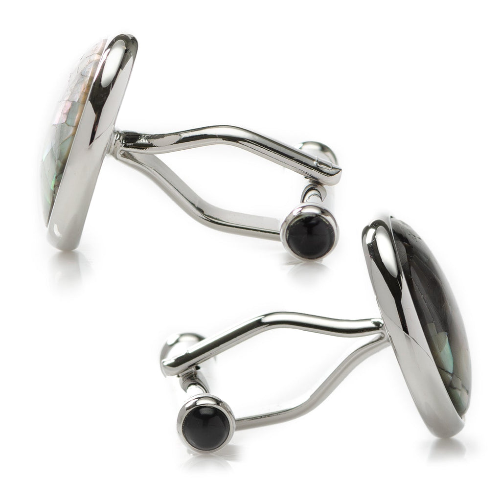 Leave a memorable impression at your next event by wearing our Sterling Mosaic Smoke Mother of Pearl Cufflinks. Artistically adorn your sleeves with this smoky rainbow of hues. The beautiful mosaic mother of pearl stone inlaid in shiny metal makes these cufflinks unforgettable. The expert craftsmanship of our sterling silver cufflinks ensures long-lasting durability.