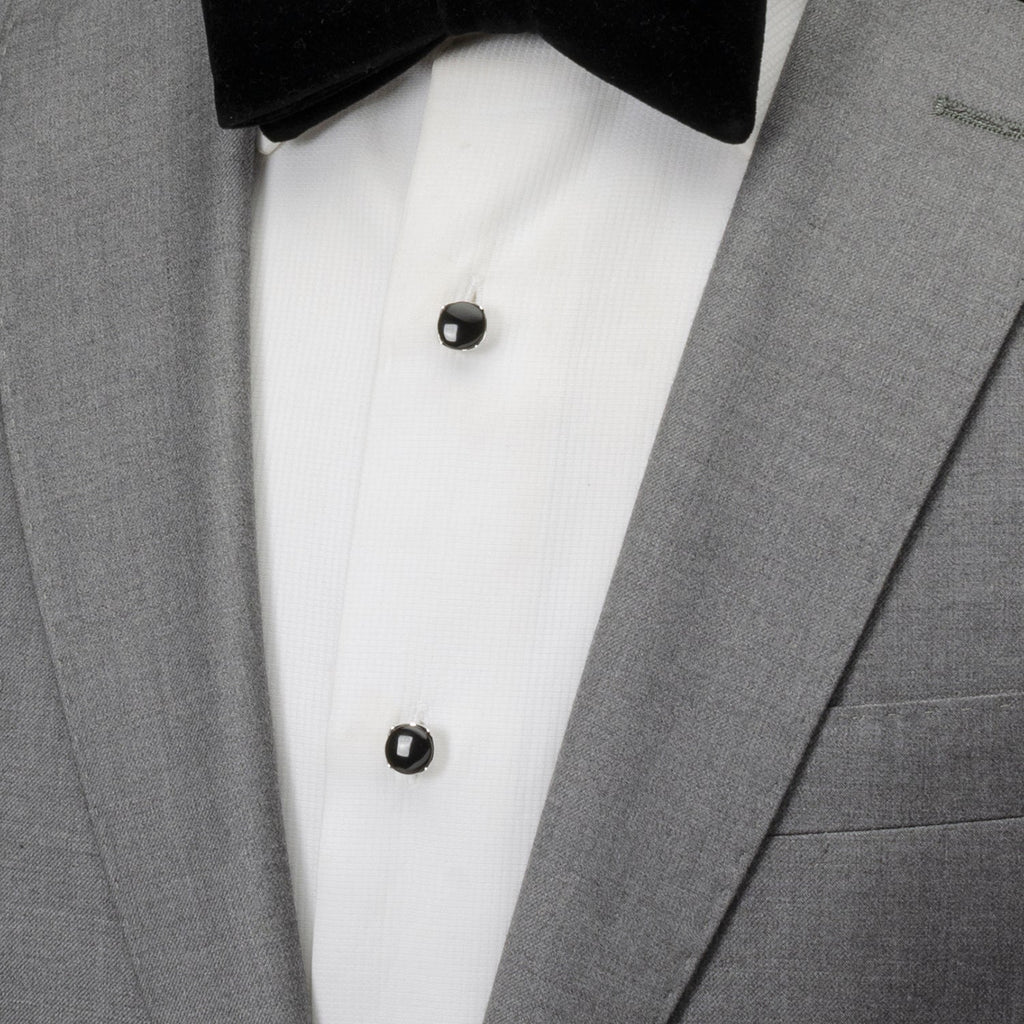 A classic, elegant look for your next formal event, this set of studs are the perfect finishing touch. Featuring smooth and shiny onyx stones nestled in a sterling silver setting. These classy studs not only dress up your shirt, they elevate your wardrobe. The expert craftsmanship of our Sterling Silver studs ensures long-lasting durability and a classic look that is sure to never go out of style. Pairs with our matching Sterling Silver Classic Formal Onyx cufflinks to create a set.