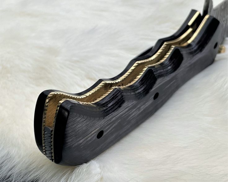 The Tactical Urban Guardian Folding Pocket Knife is built for everyday use and survival. Featuring a custom handmade 8-inch Damascus steel blade with a sharp edge, this folding knife offers strength and precision. The handle is crafted from exotic Pakka wood, providing both durability and comfort, and includes a convenient pocket clip. With a Rockwell Hardness of 55-60 HRC, this is a full working tool that excels in both utility and style. Comes with a leather sheath. Available at KBS Knives Store.