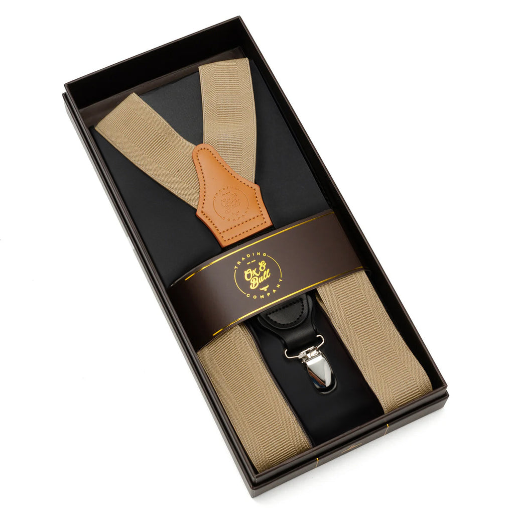 Look to tradition to create a modern, yet sophisticated style. Our Tan Convertible Suspenders are designed to provide support without sacrificing comfort. The expert craftsmanship of our leather crosspatch suspenders do not restrict movement and will remain in place without slipping or having to adjust. Suspenders add a unique and versatile look that can be dressed up with a suit, or dressed down with jeans and a blazer.